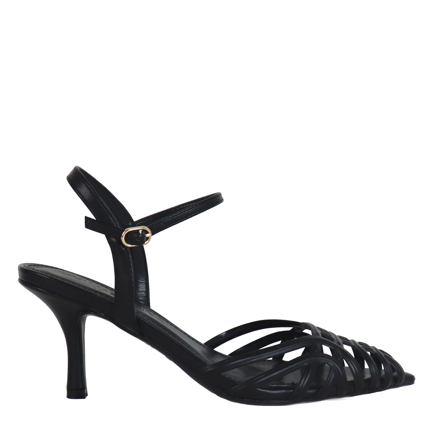 Primadonna γυναικεία γόβα, σε μαύρο χρώμα, κατασκευασμένη από λουστρίνι. Ύψος τακουνιού 7.5εκ.