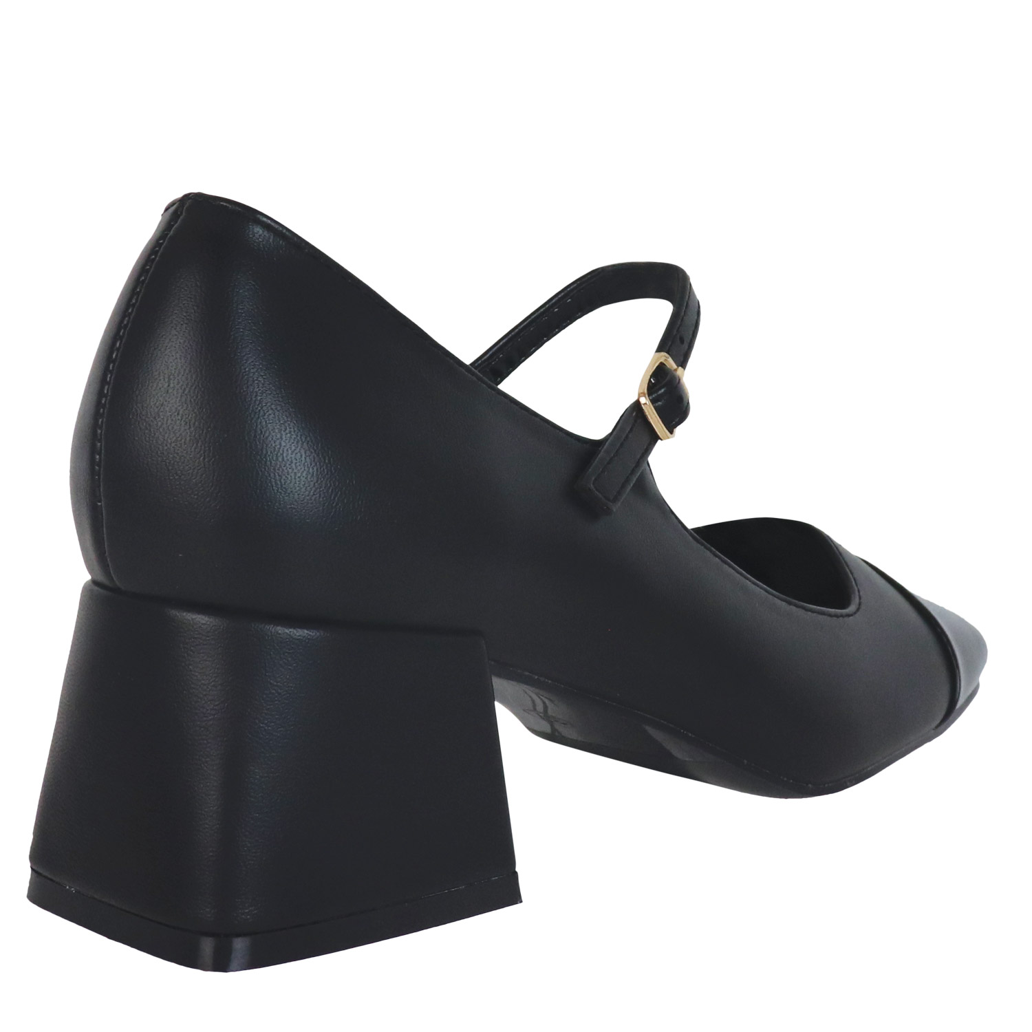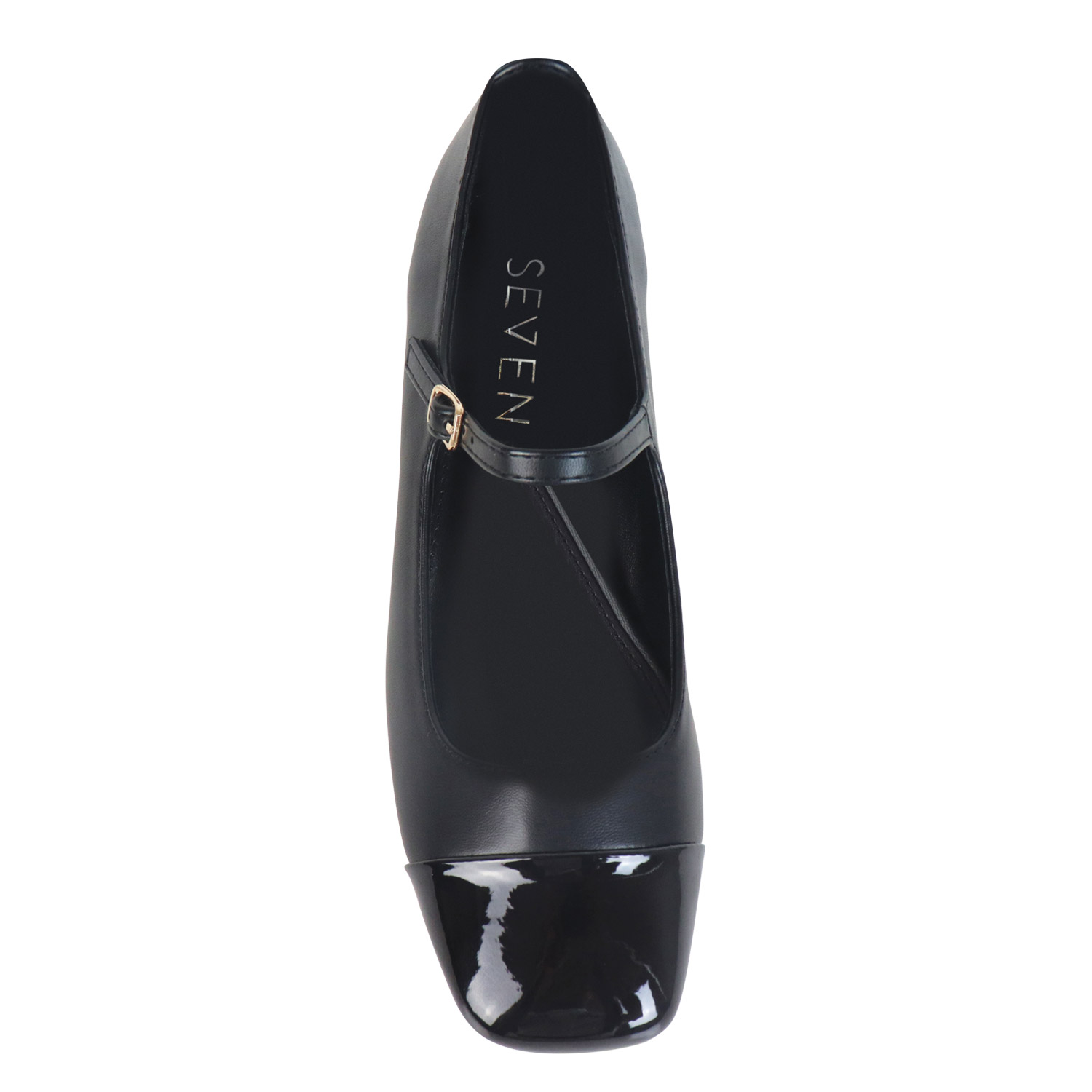Seven γυναικεία γόβα, σε μαύρο χρώμα, κατασκευασμένη από λουστρίνι. Ύψος τακουνιού 5.5εκ.