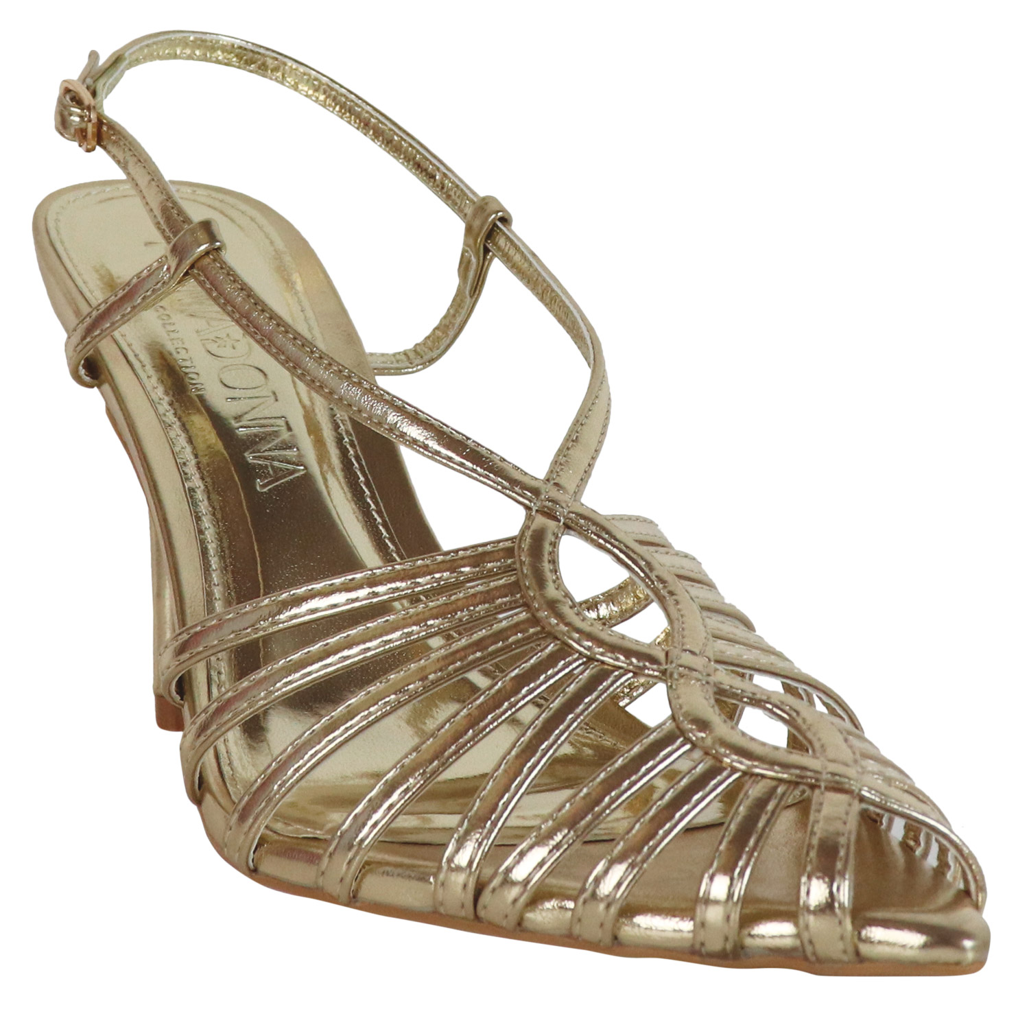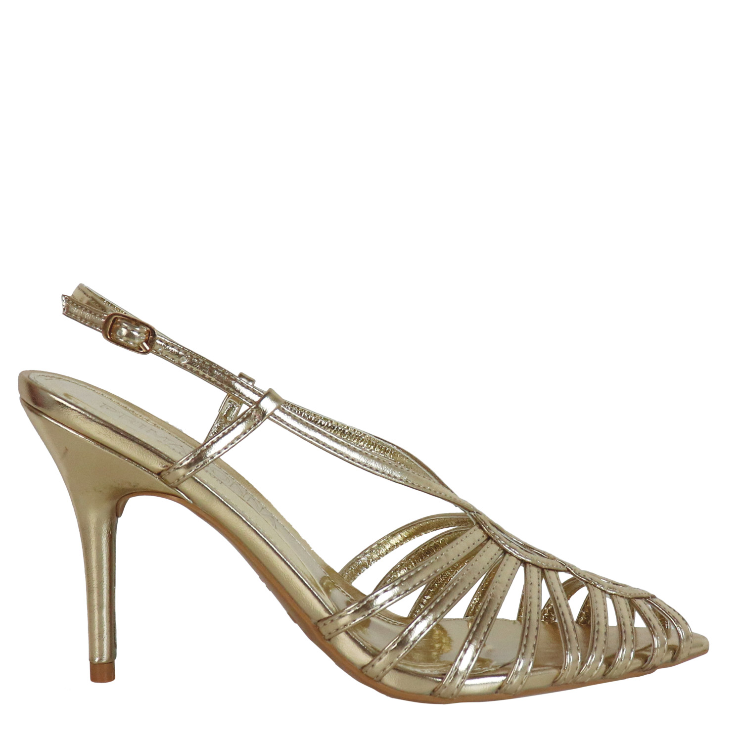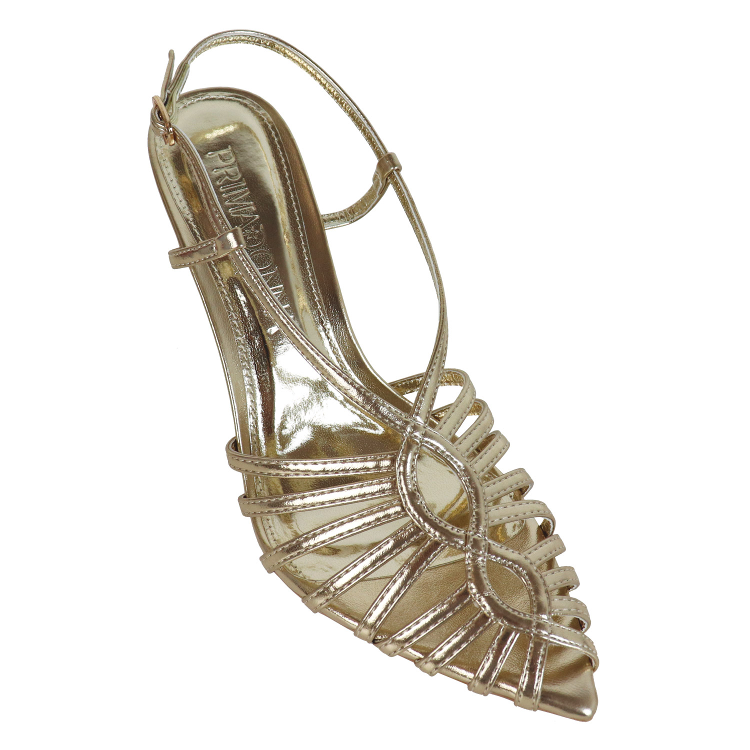 Primadonna γυναικεία γόβα, σε χρυσό χρώμα, κατασκευασμένη από λουστρίνι. Ύψος τακουνιού 9.5εκ.