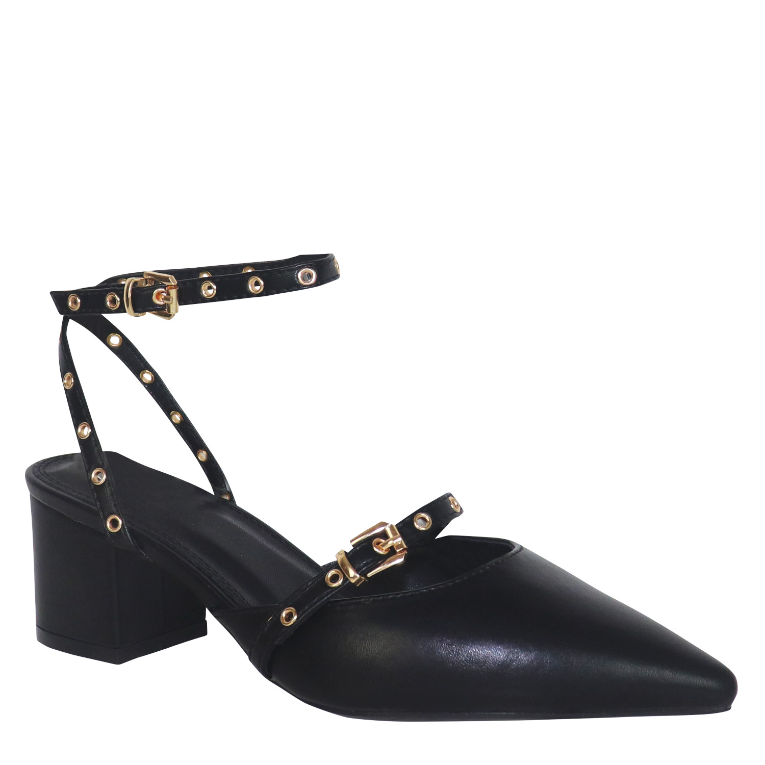 Migato γυναικεία γόβα σε μαύρο χρώμα κατασκευασμένη από οικολογικό δέρμα. Ύψος τακουνιού 6.5εκ.