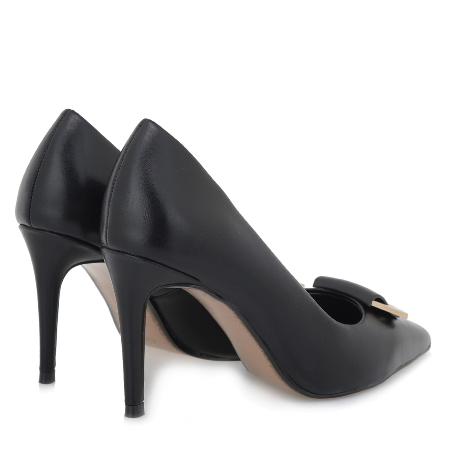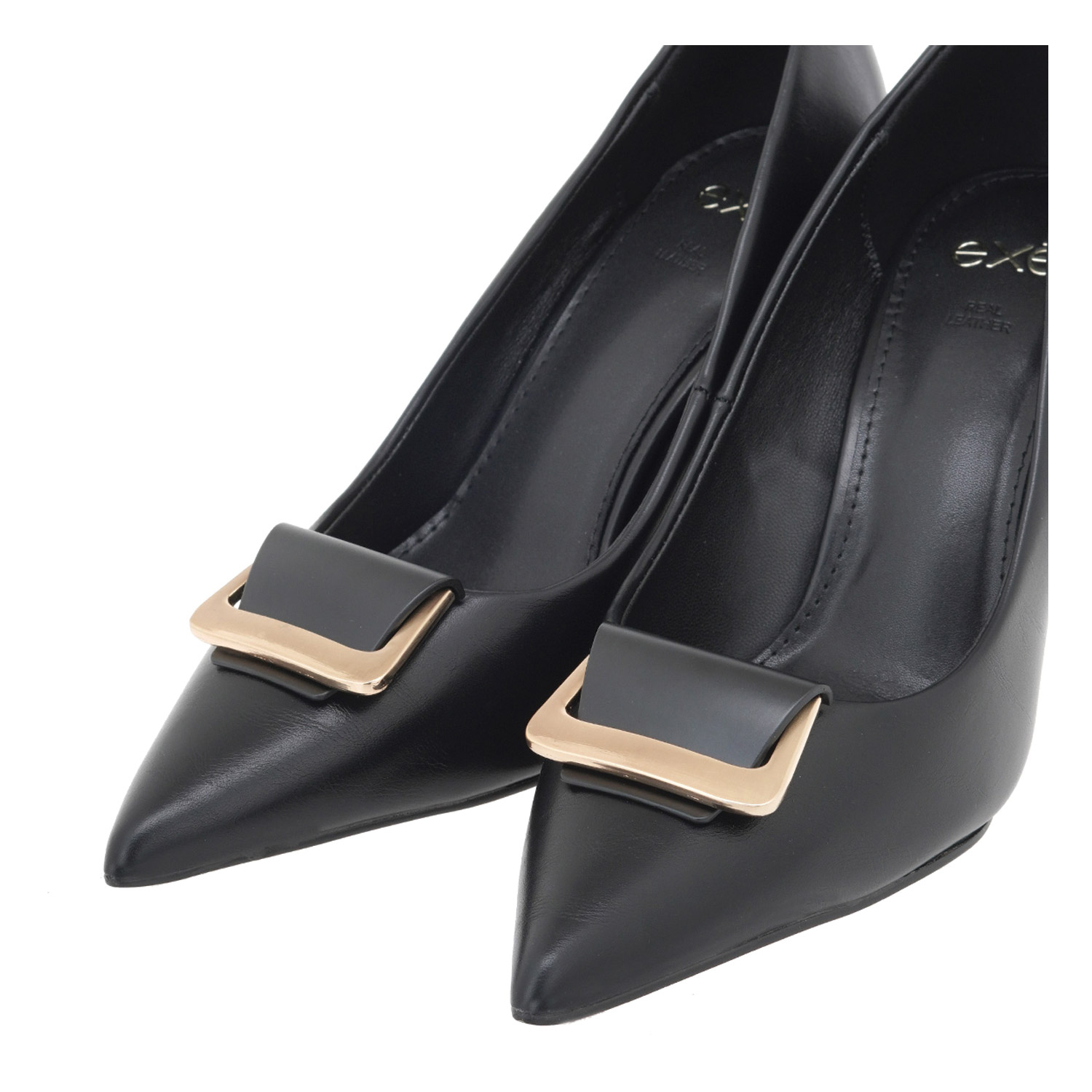 Exe γυναικεία γόβα, σε μαύρο χρώμα, κατασκευασμένη από οικολογικό δέρμα. Ύψος τακουνιού 8.5εκ.