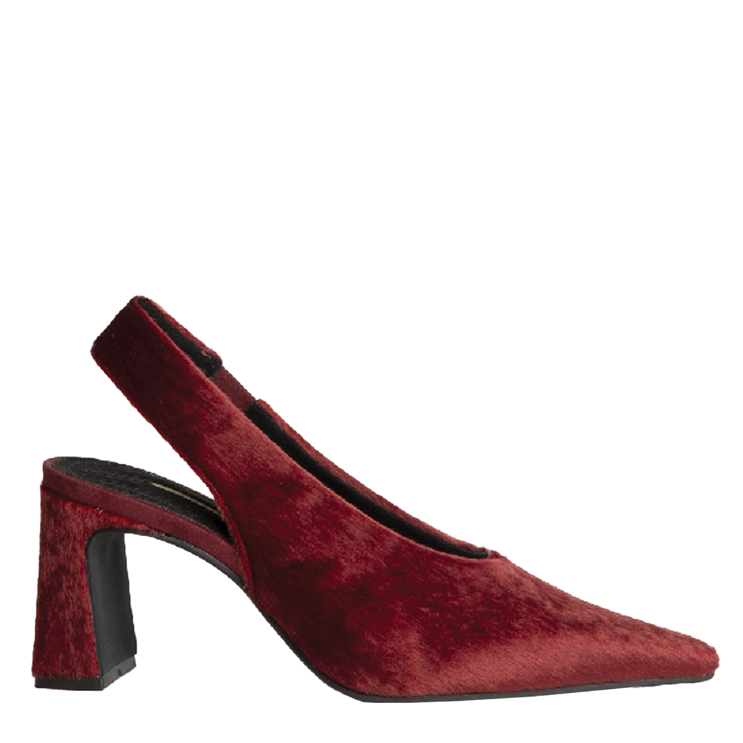 Koniarisshoes γυναικεία γόβα, σε μπορντώ χρώμα, κατασκευασμένη από ύφασμα. Ύψος τακουνιού 7εκ.