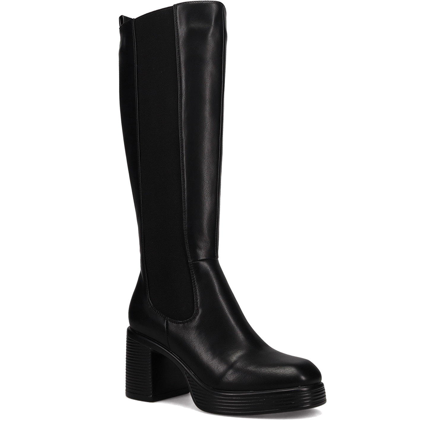 Migato γυναικεία μπότα, σε μαύρο χρώμα, κατασκευασμένη από οικολογικό δέρμα. Ύψος τακουνιού 8εκ.