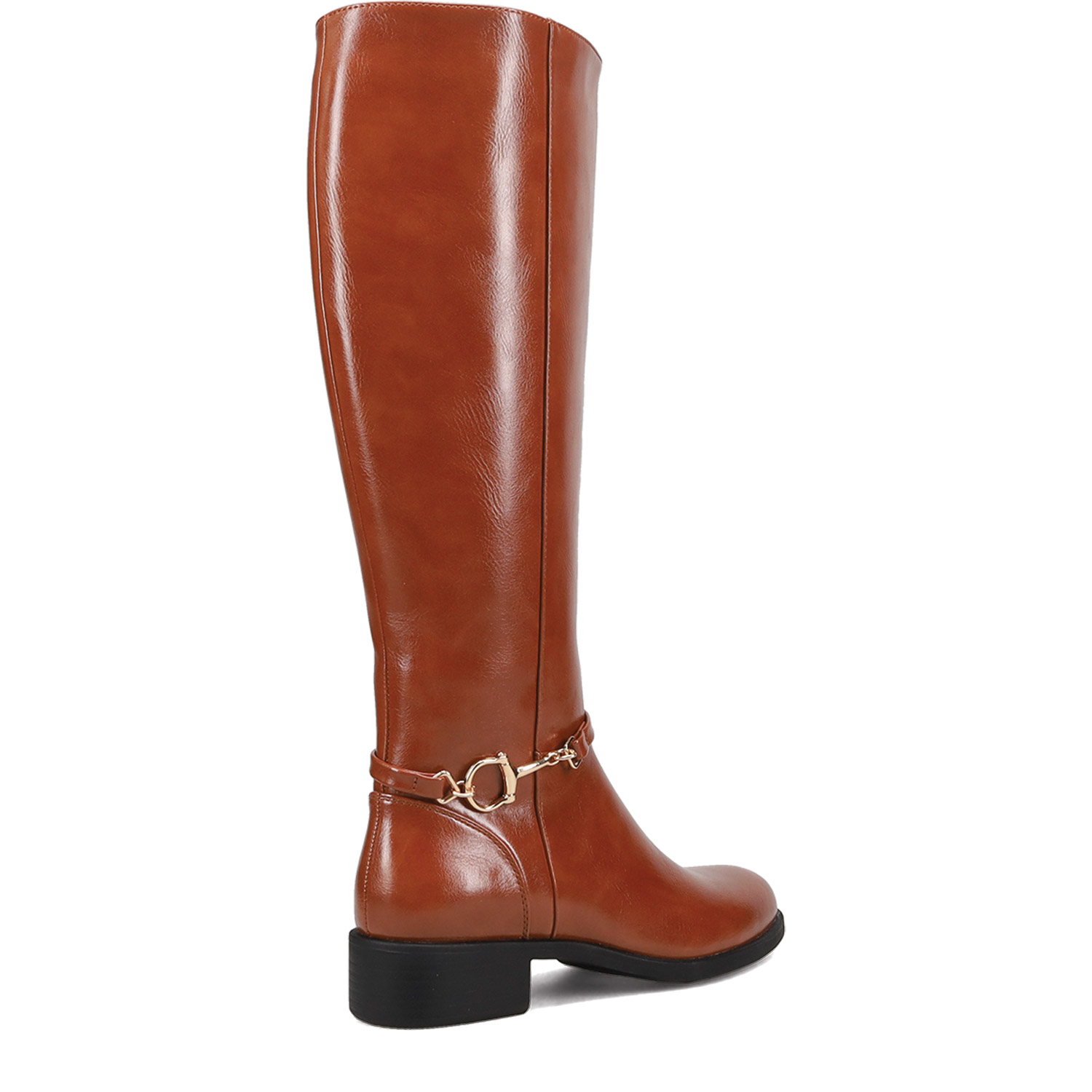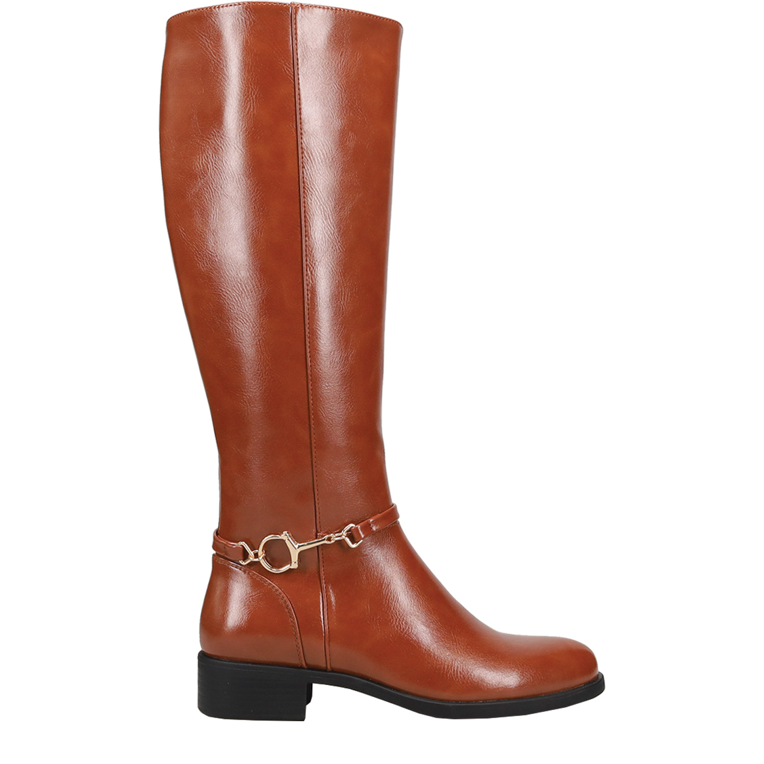 Migato γυναικεία μπότα, σε ταμπά χρώμα, κατασκευασμένη από οικολογικό δέρμα. Ύψος τακουνιού 3.4εκ.