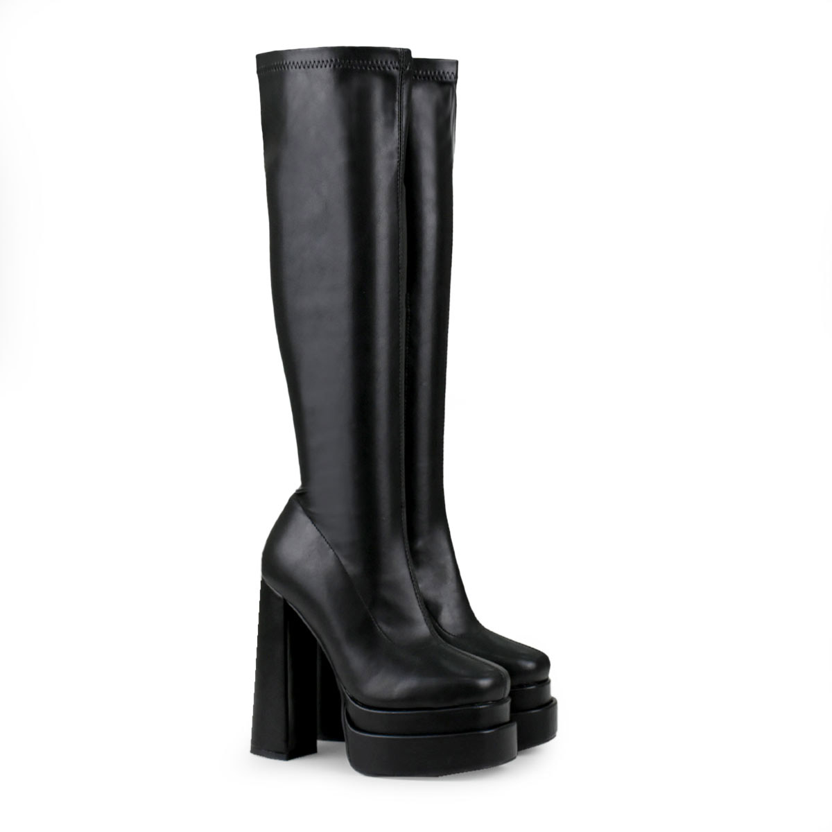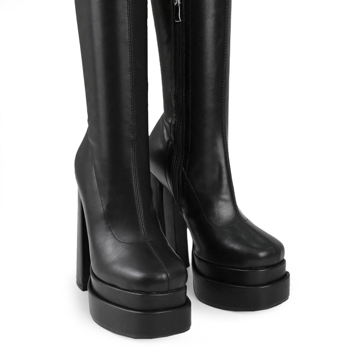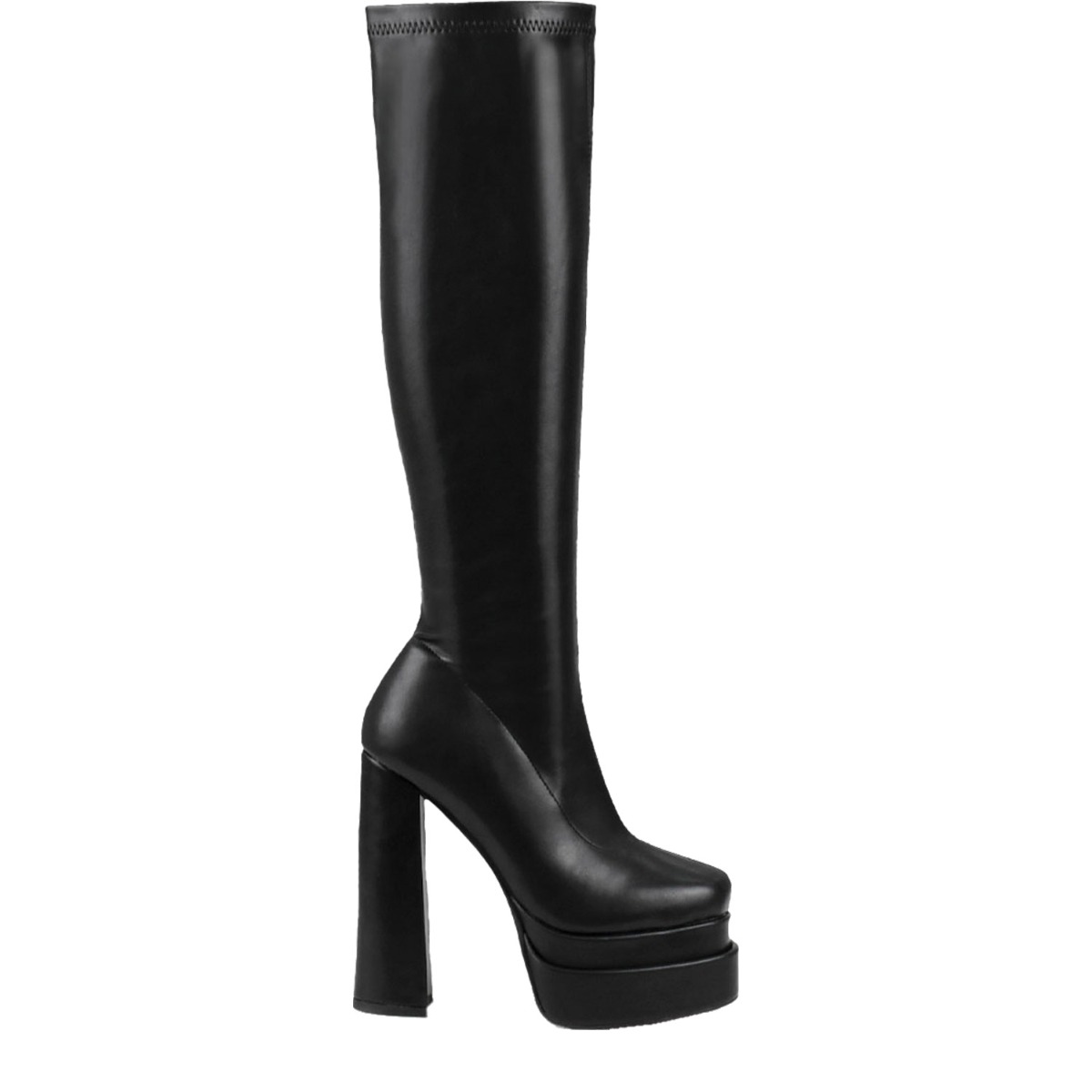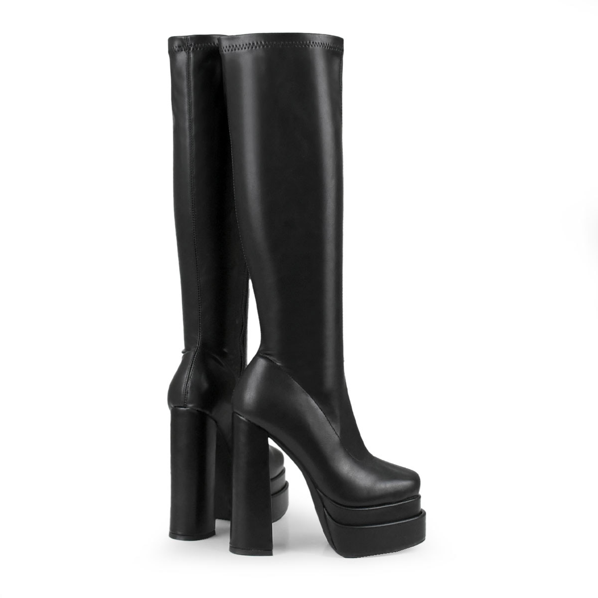 Seven γυναικεία μπότα σε μαύρο χρώμα κατασκευασμένη από οικολογικό δέρμα. Ύψος τακουνιού 14εκ.