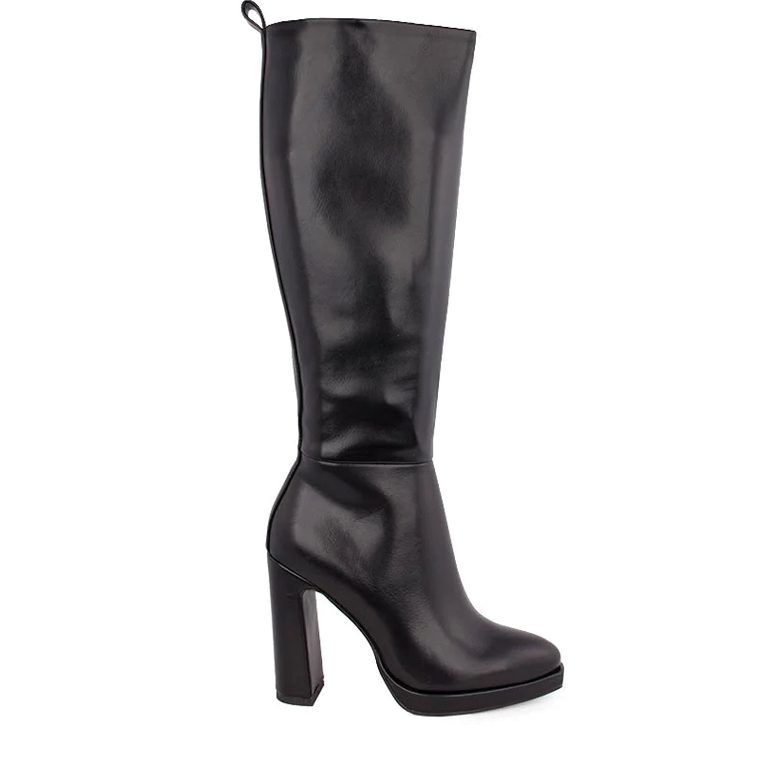 Seven γυναικεία μπότα, σε μαύρο χρώμα, κατασκευασμένη από οικολογικό δέρμα. Ύψος τακουνιού 11εκ.