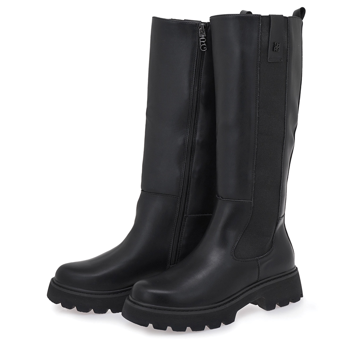 Renato Garini γυναικεία μπότα, σε μαύρο χρώμα, κατασκευασμένη από οικολογικό δέρμα. Ύψος τακουνιού 4.5εκ.