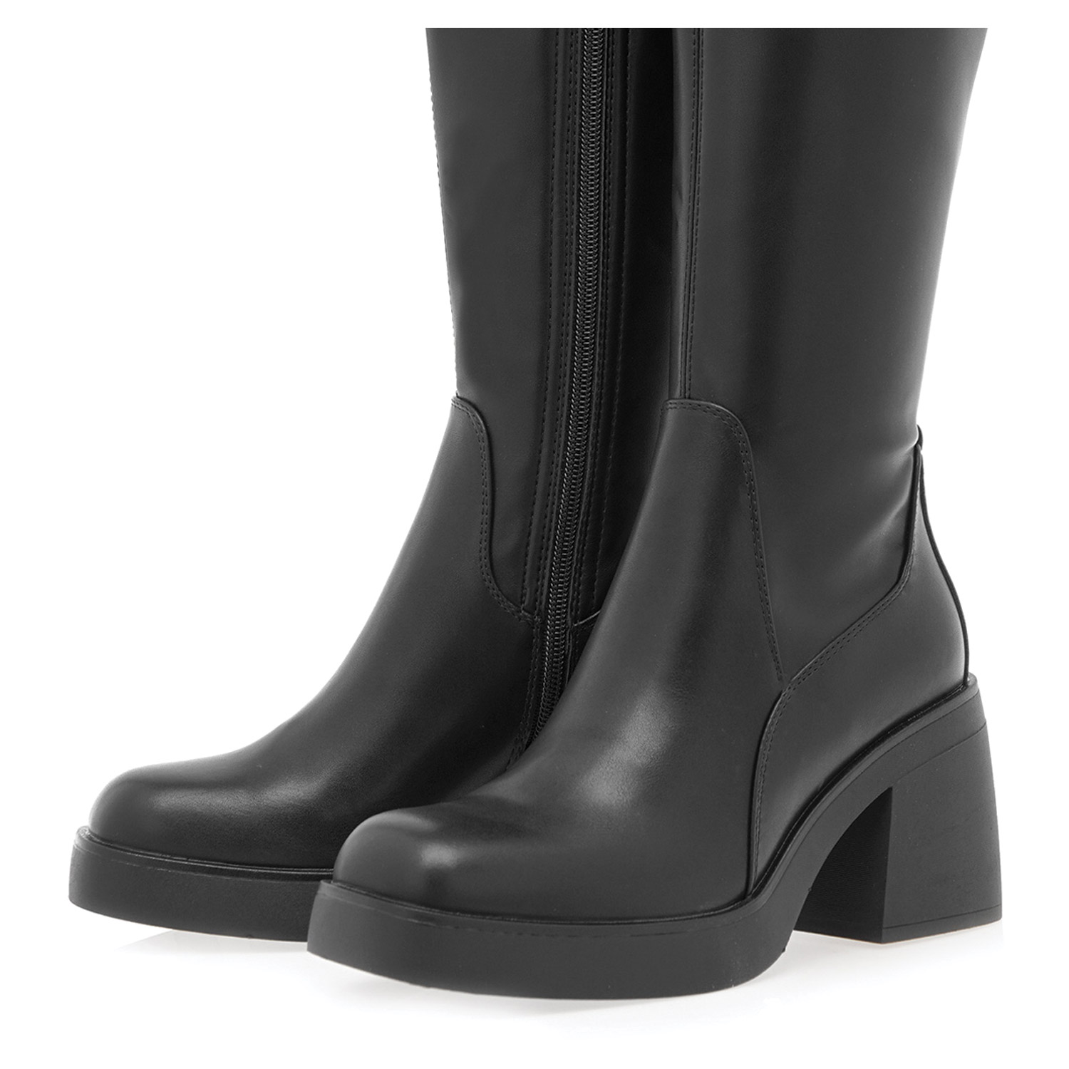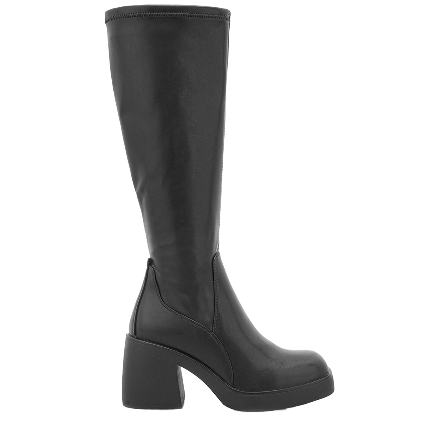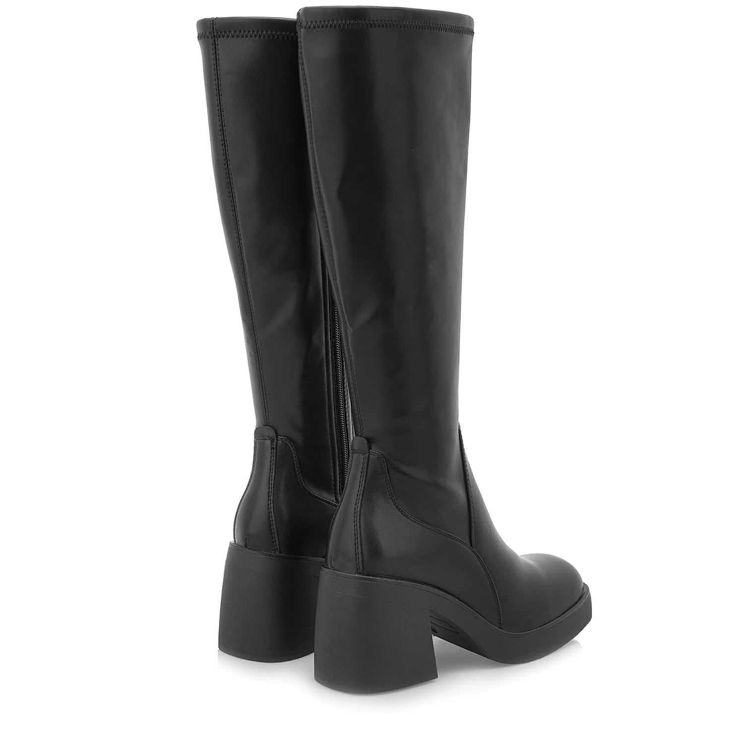 Seven γυναικεία μπότα, σε μαύρο χρώμα, κατασκευασμένη από οικολογικό δέρμα. Ύψος τακουνιού 8.5εκ.