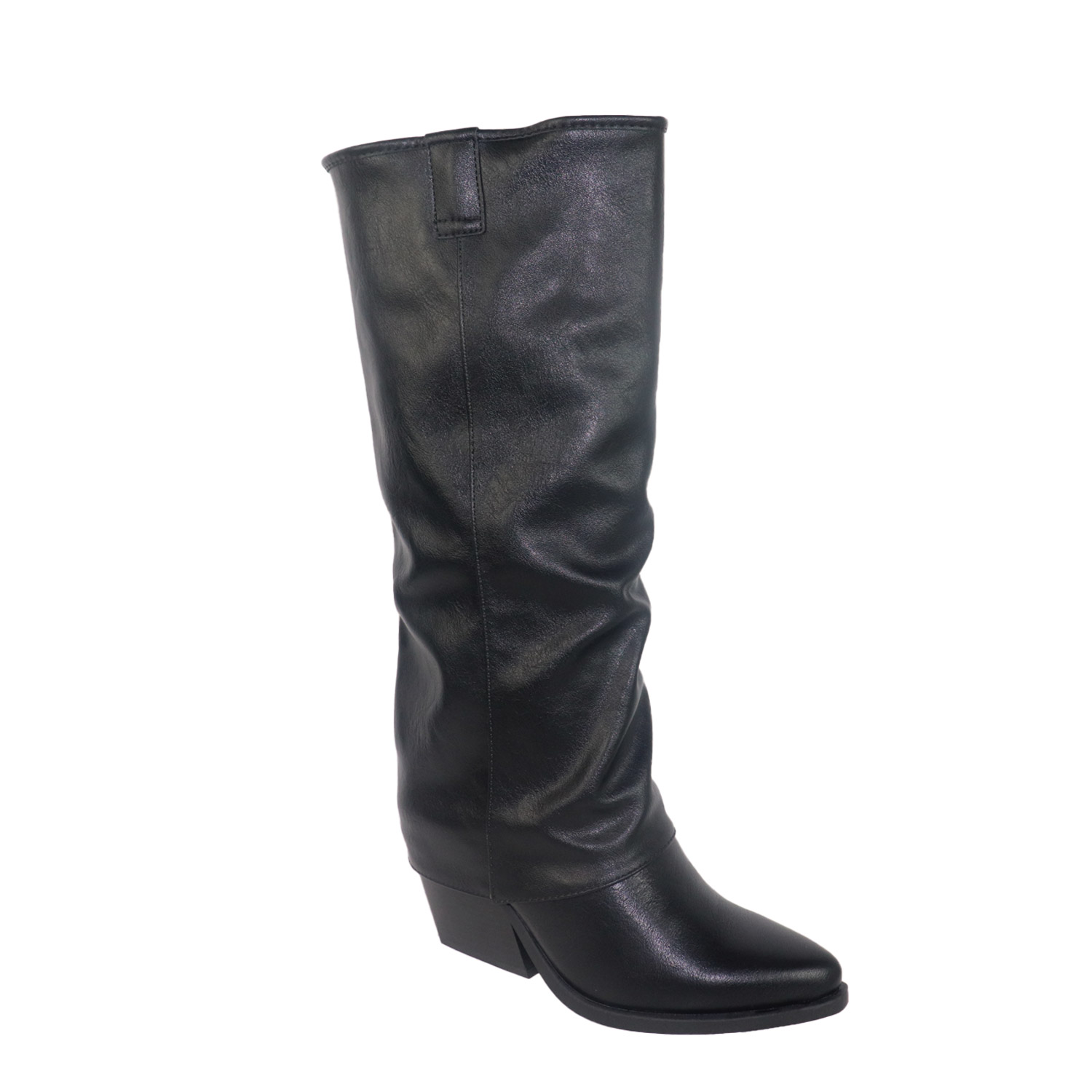 Koniarisshoes γυναικεία μπότα, σε μαύρο χρώμα, κατασκευασμένη από οικολογικό δέρμα. Ύψος τακουνιού 6εκ.