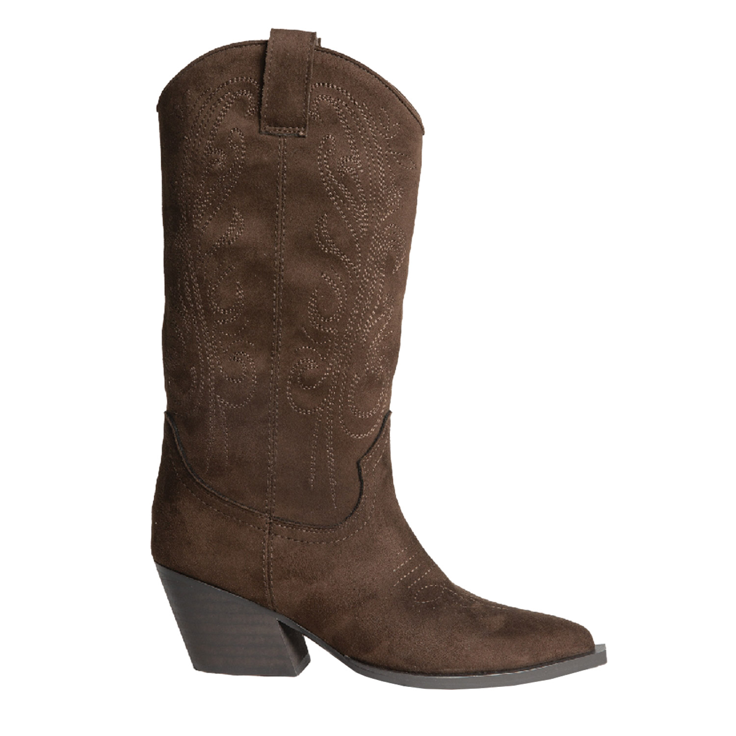 Koniarisshoes γυναικεία μπότα, σε καφέ χρώμα, κατασκευασμένη από οικολογικό καστόρι. Ύψος τακουνιού 3.5εκ.
