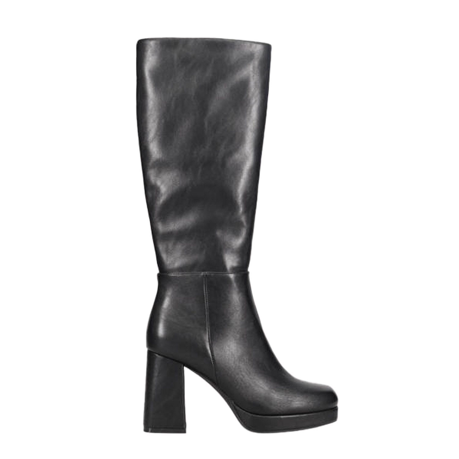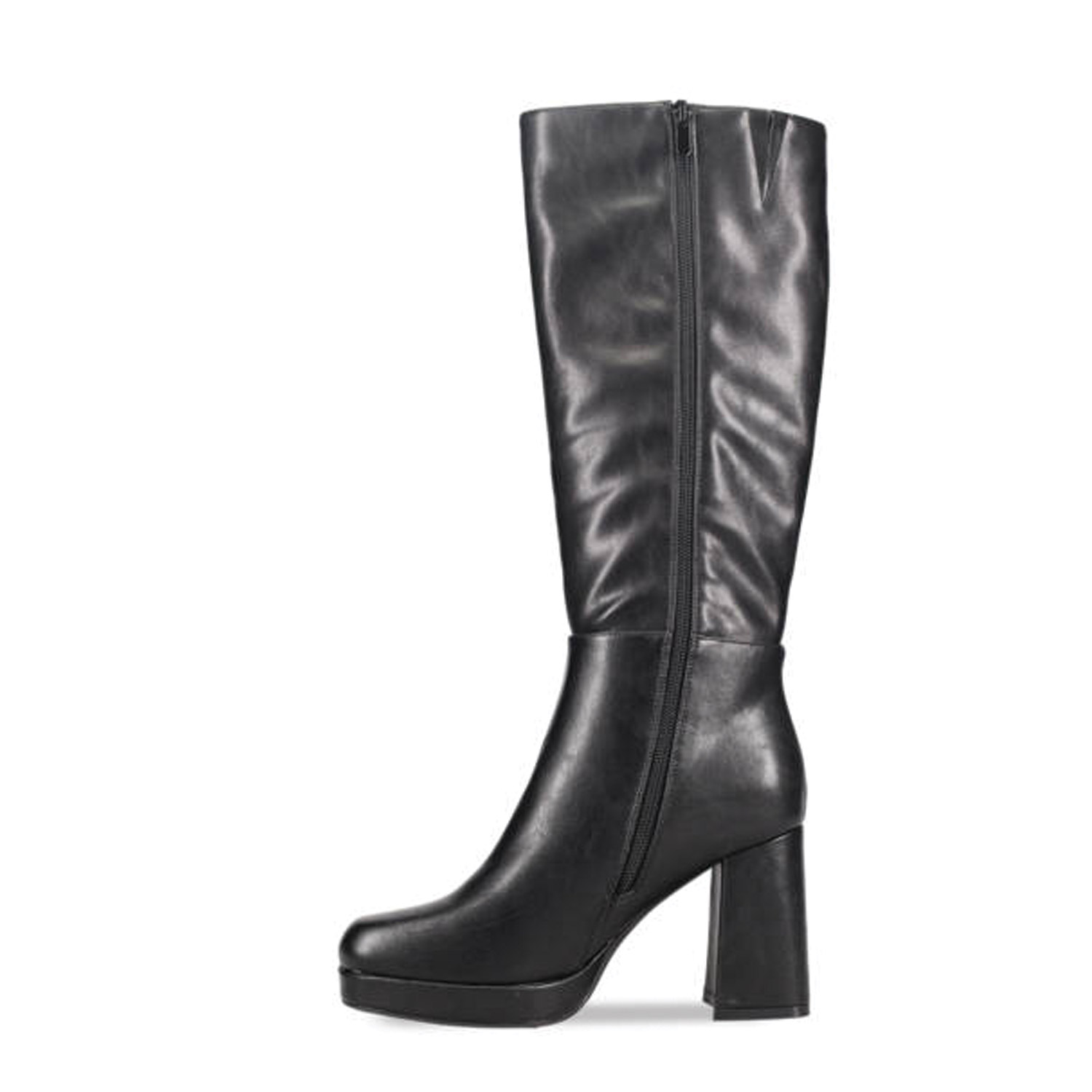 Μαύρη μπότα με ψηλό χοντρό τακούνι. Κλείνει με φερμουάρ.