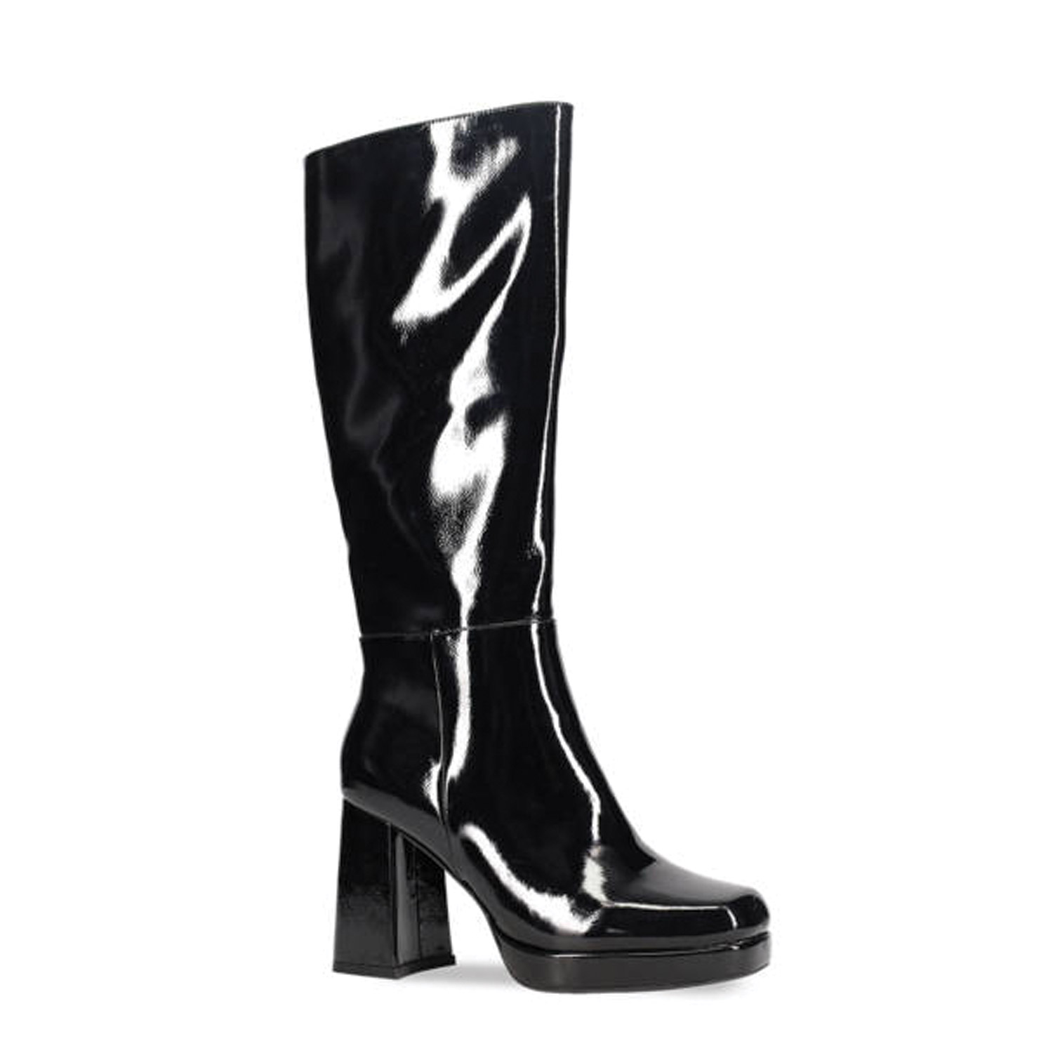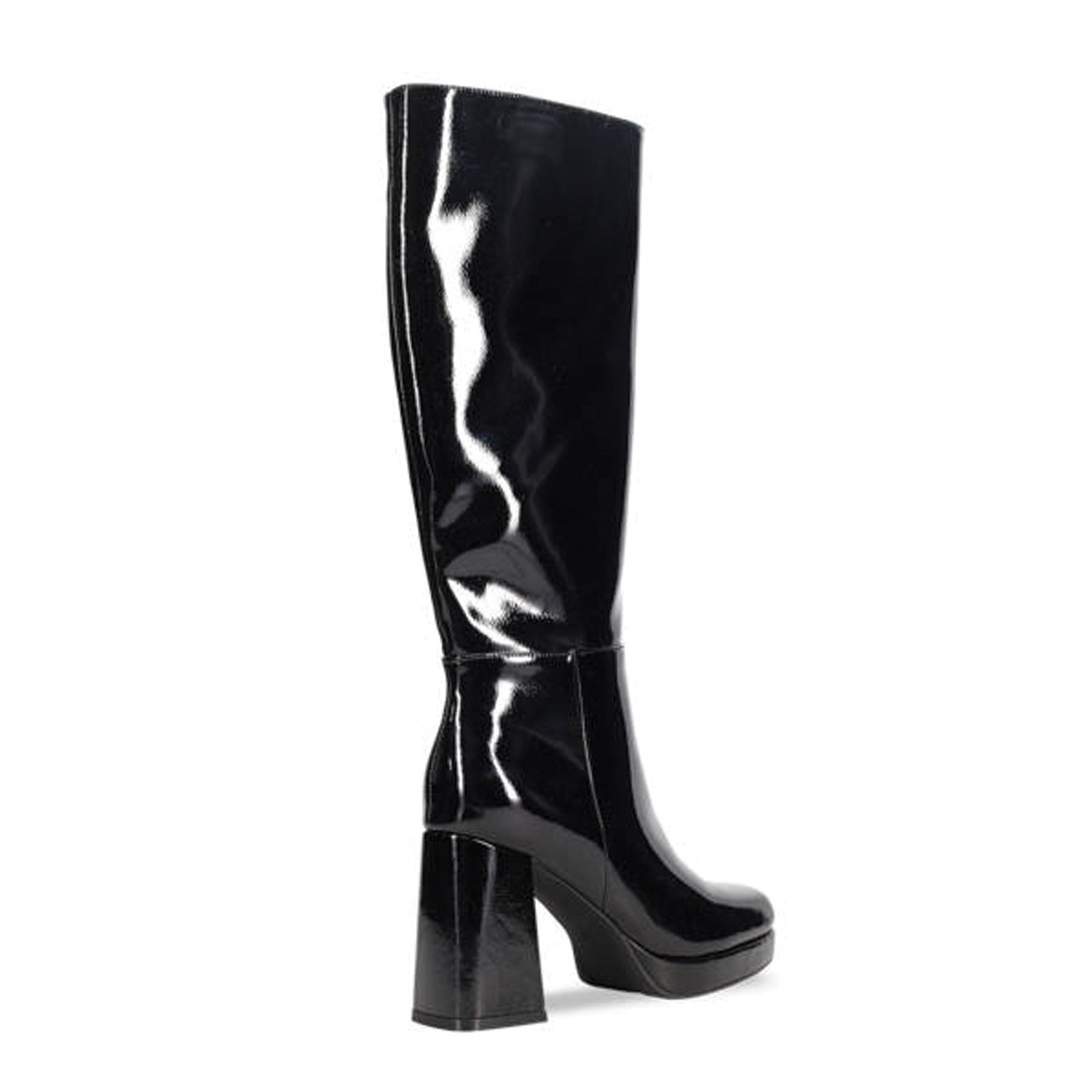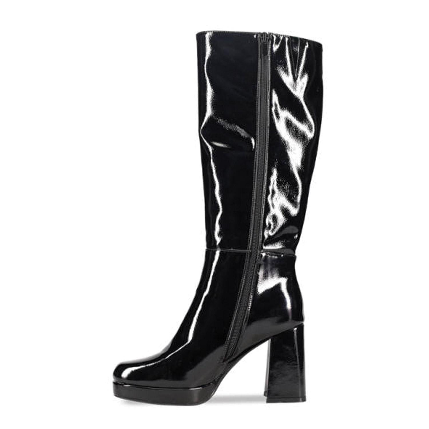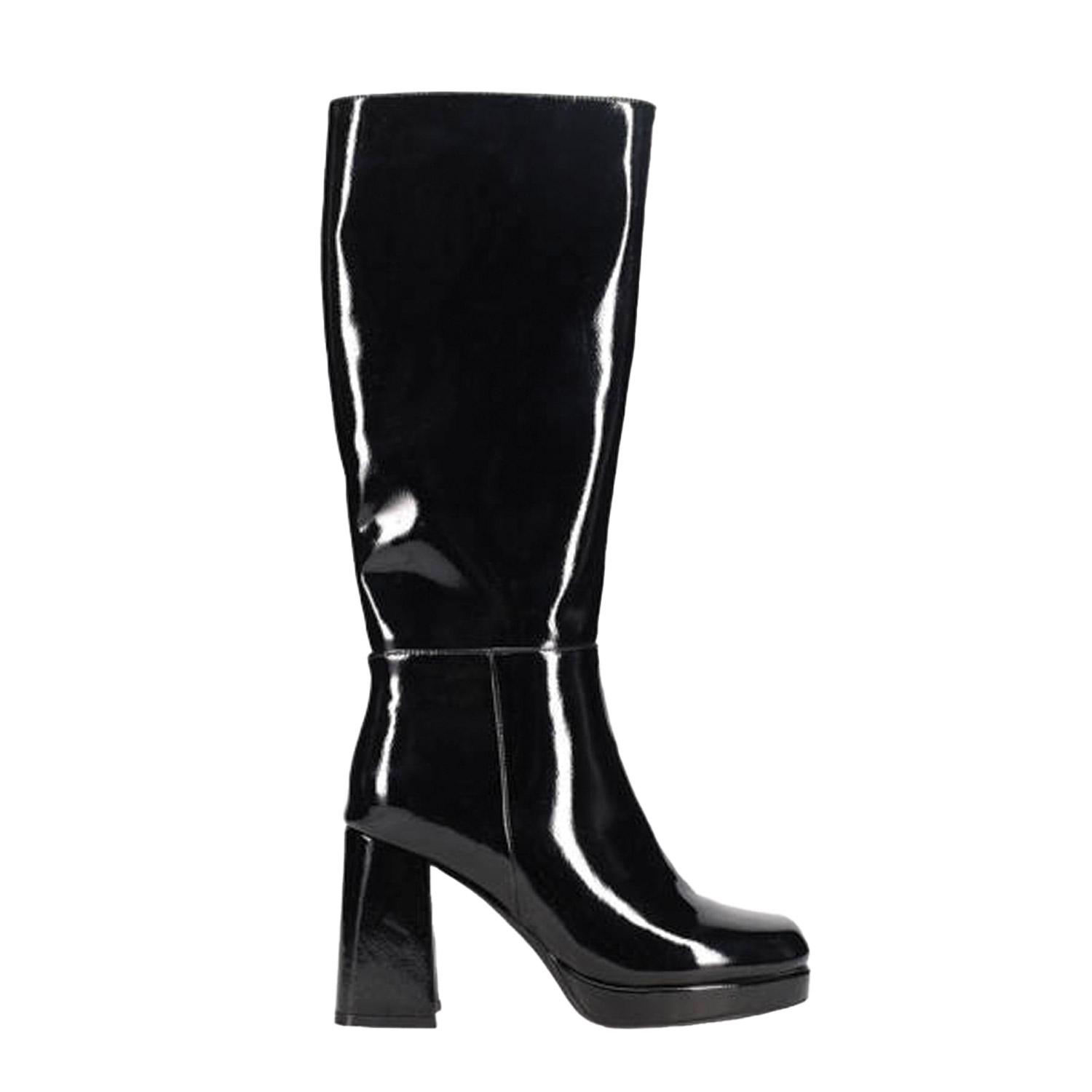 Μαύρη μπότα με ψηλό χοντρό τακούνι. Κλείνει με φερμουάρ.