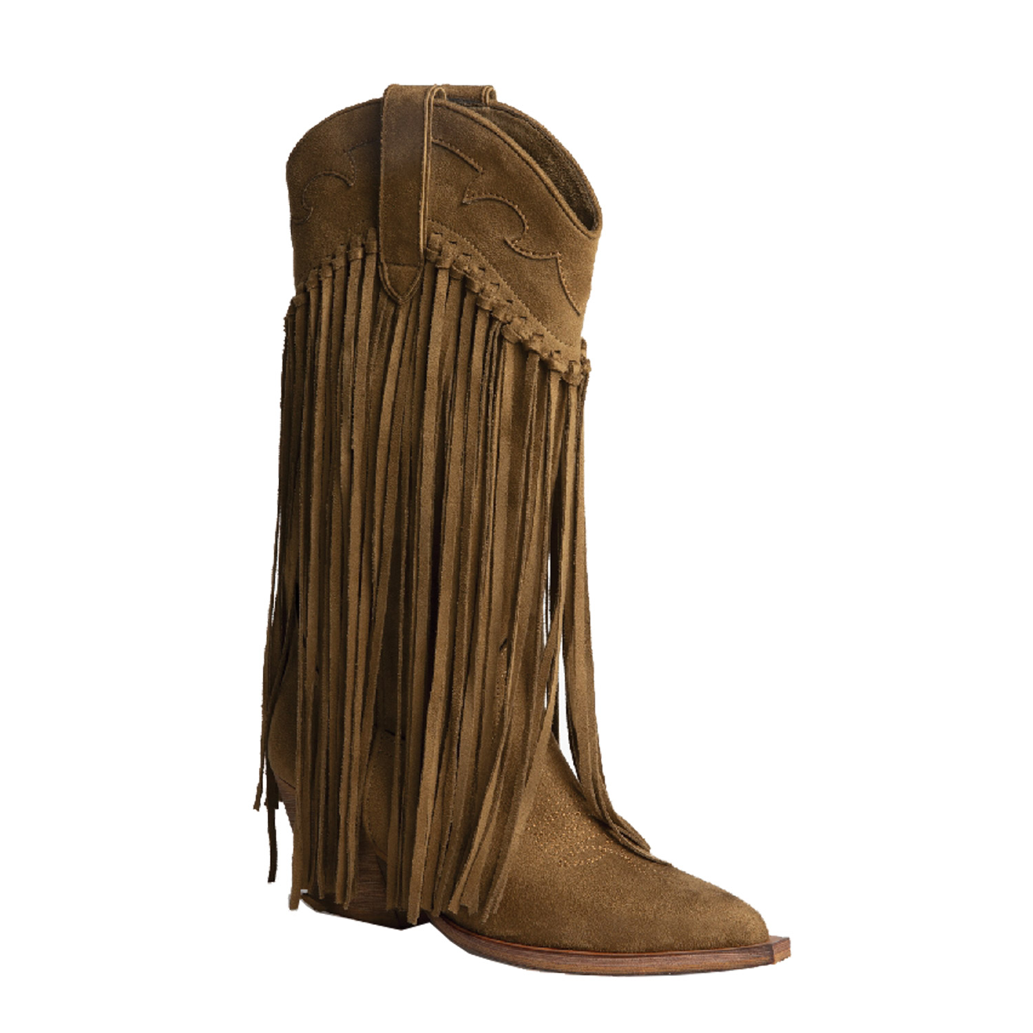 Η Cowboy μπότα Corina είναι το απόλυτο statement κομμάτι για δυναμικές και μοντέρνες εμφανίσεις. Εμπνευσμένη από το western στυλ, συνδυάζει αυθεντικές cowboy λεπτομέρειες με σύγχρονη αισθητική, δημιουργώντας ένα εντυπωσιακό αποτέλεσμα που ξεχωρίζει.