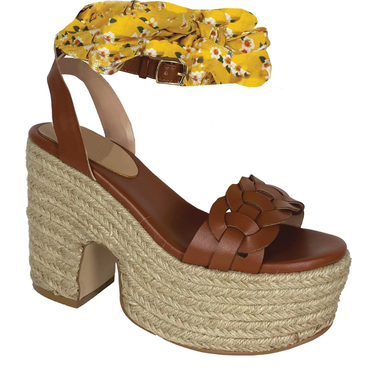 Koniarisshoes γυναικεία πλατφόρμα σε tabac χρώμα κατασκευασμένη από ύφασμα. Ύψος 12 εκ.