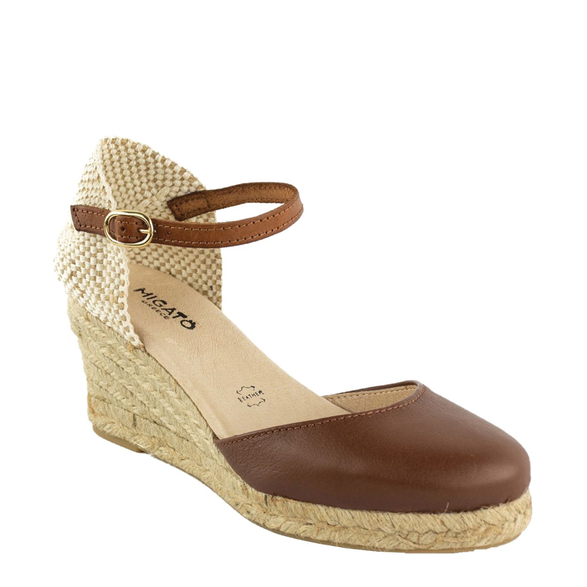 Migato γυναικεία πλατφόρμα σε tabac χρώμα κατασκευασμένη από δέρμα. Ύψος τακουνιού 7.5εκ.