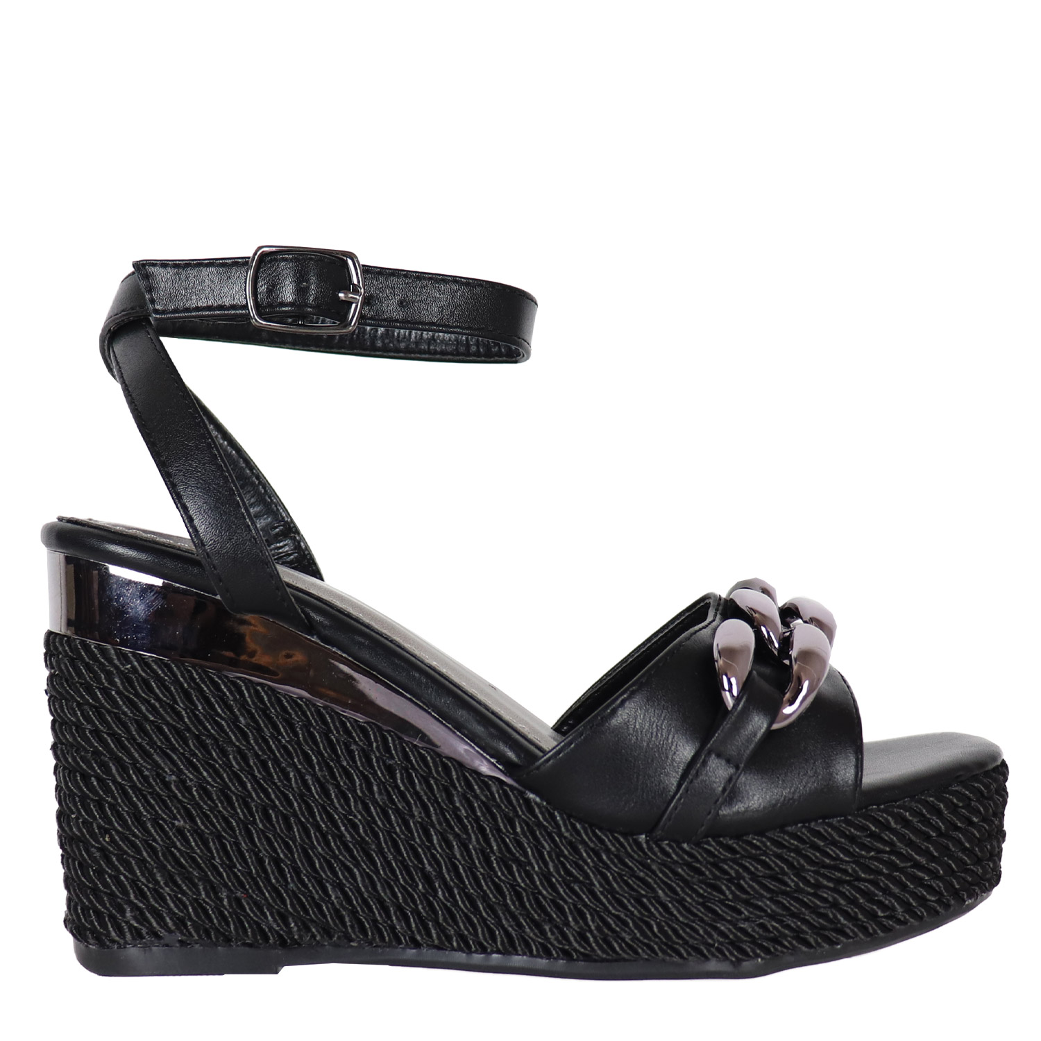 Migato γυναικεία πλατφόρμα σε μαύρο χρώμα κατασκευασμένη από οικολογικό δέρμα. Ύψος 10,5εκ.