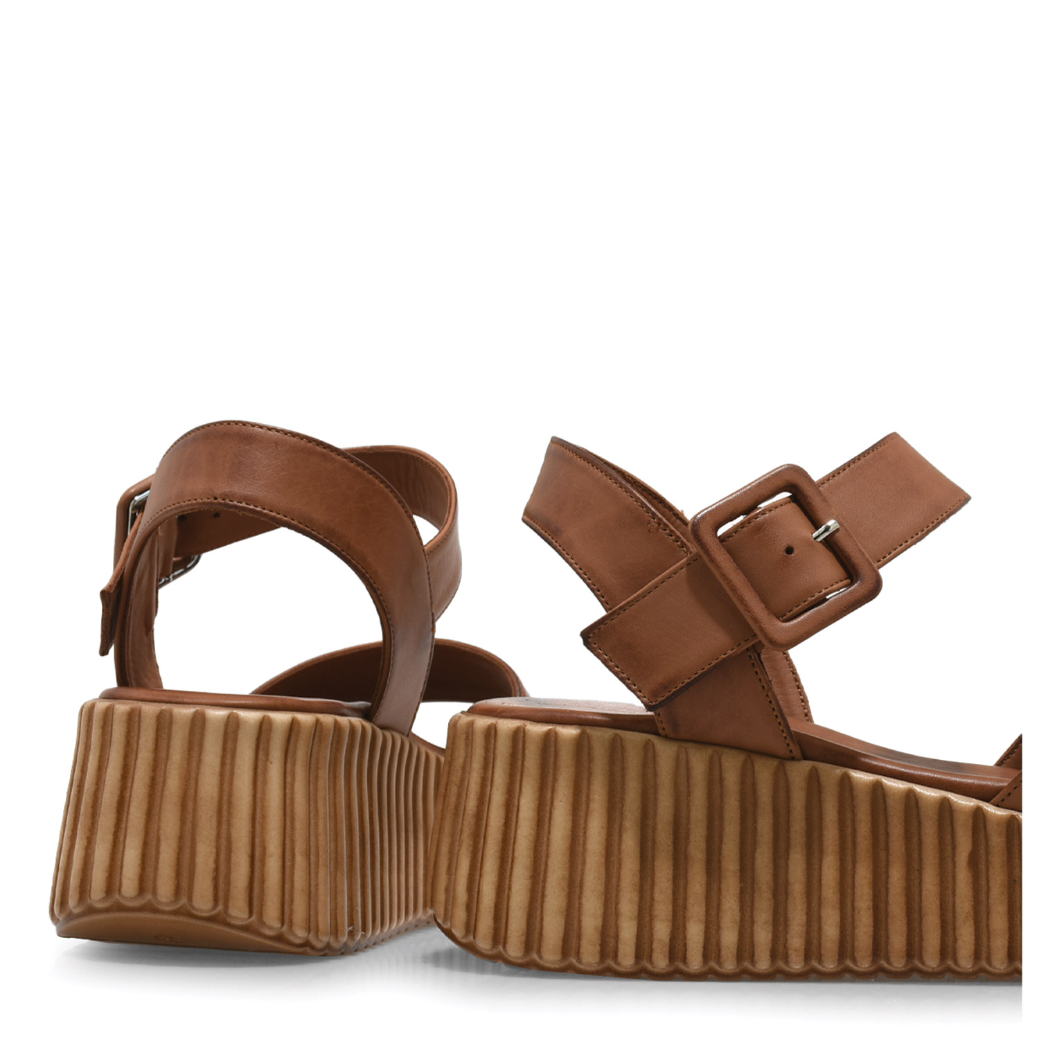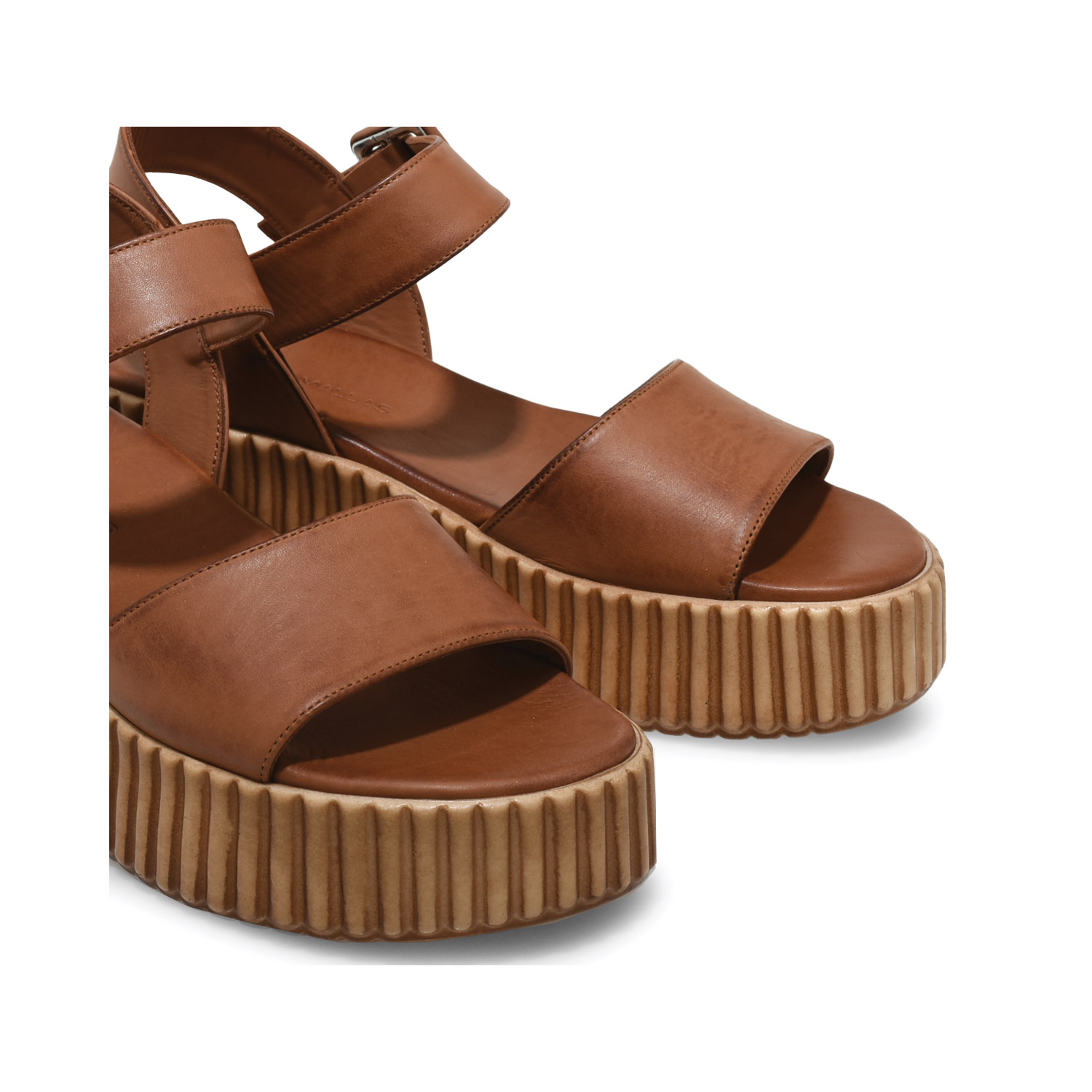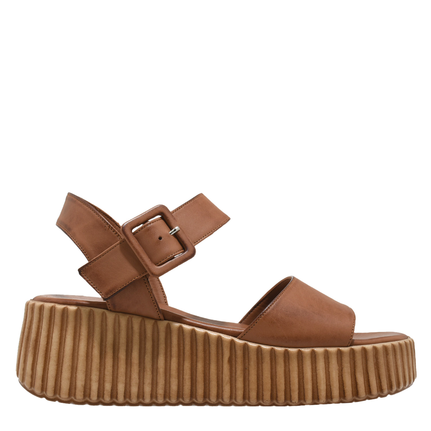 Tsakiris Mallas γυναικεία πλατφόρμα, σε ταμπά χρώμα, κατασκευασμένη από δέρμα. Ύψος σόλας 5.5εκ.