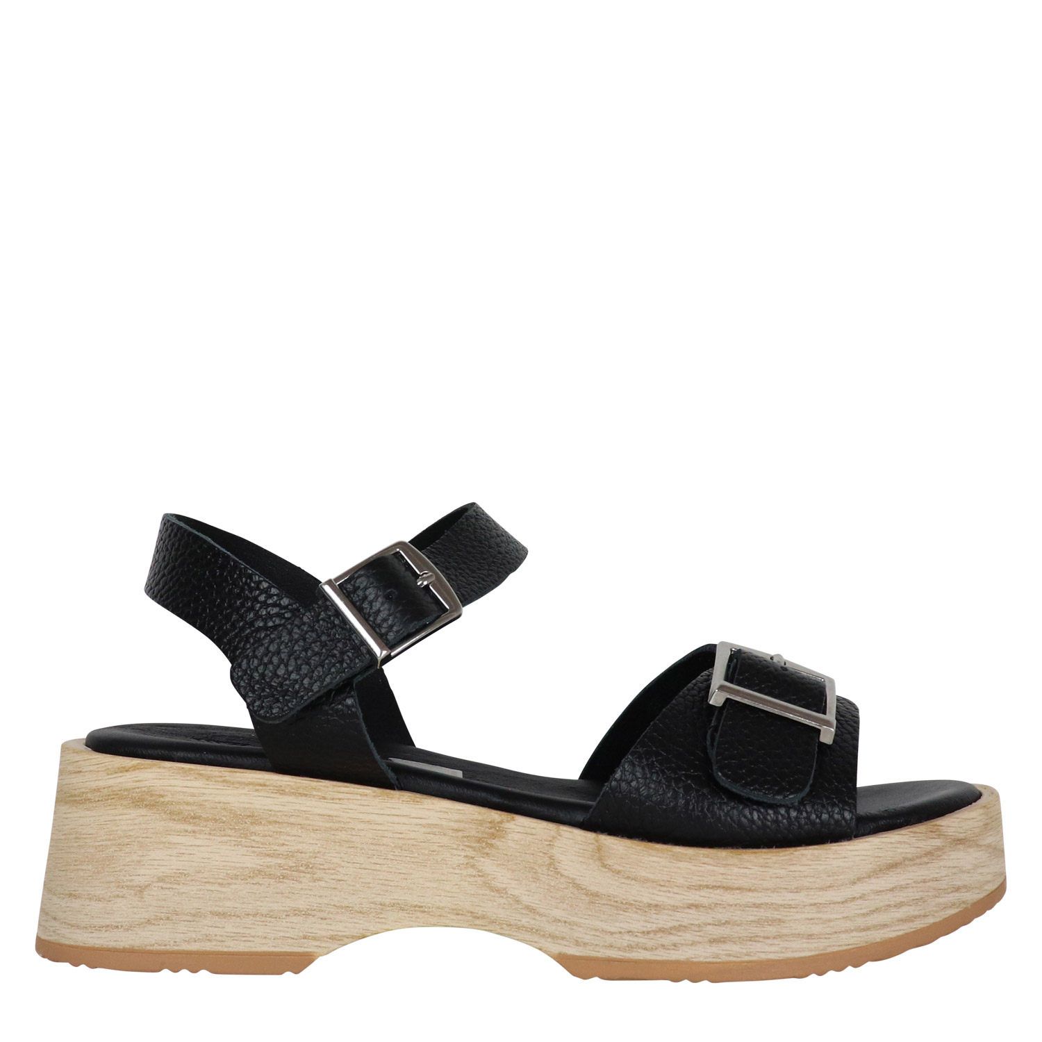 Koniarisshoes γυναικεία πλατφόρμα σε μαύρο χρώμα κατασκευασμένη από δέρμα. Ύψος σόλας 4εκ.