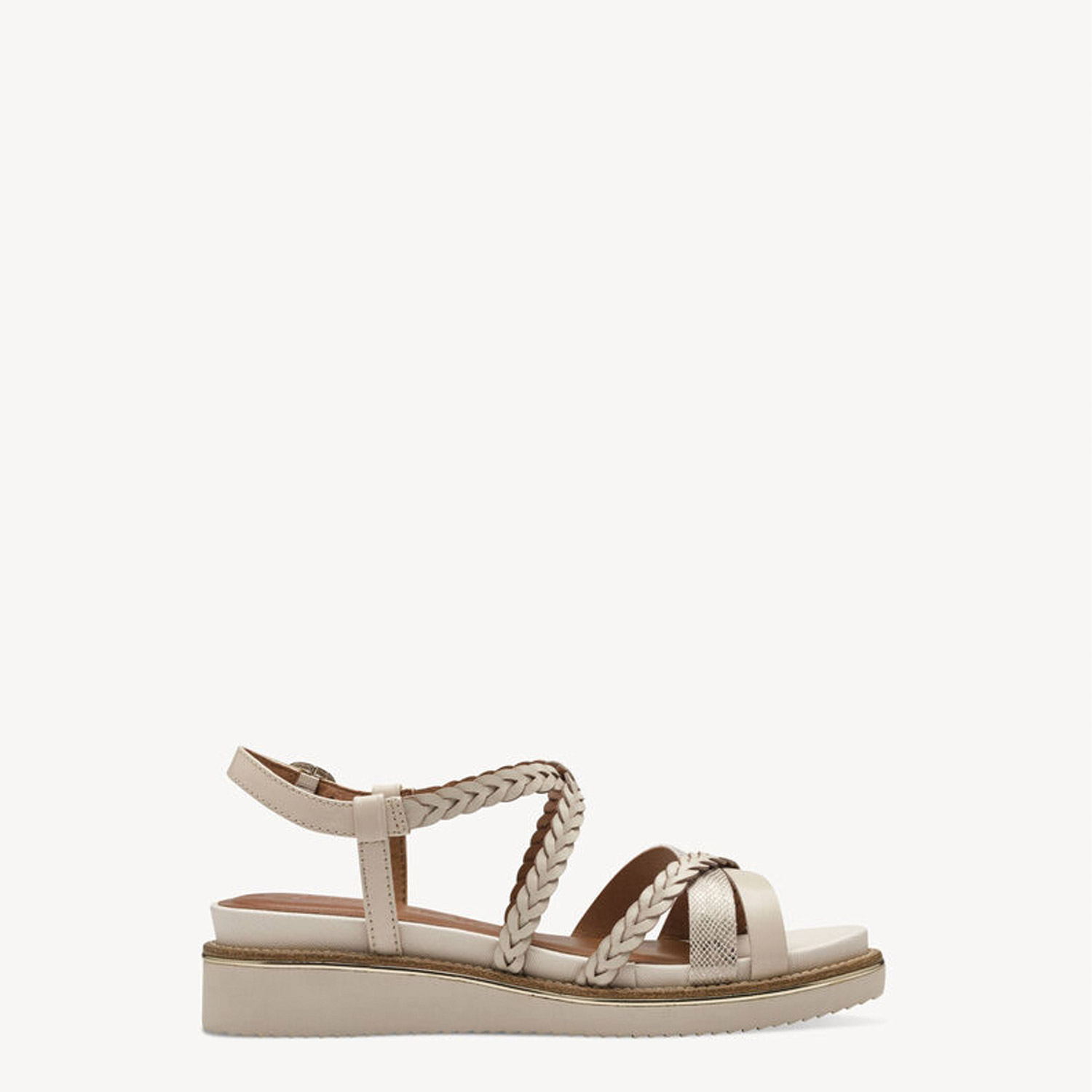 Tamaris γυναικεία πλατφόρμα σε μπεζ χρώμα κατασκευασμένη από δέρμα και οικολογικό δέρμα. Ύψος 4.5εκ.