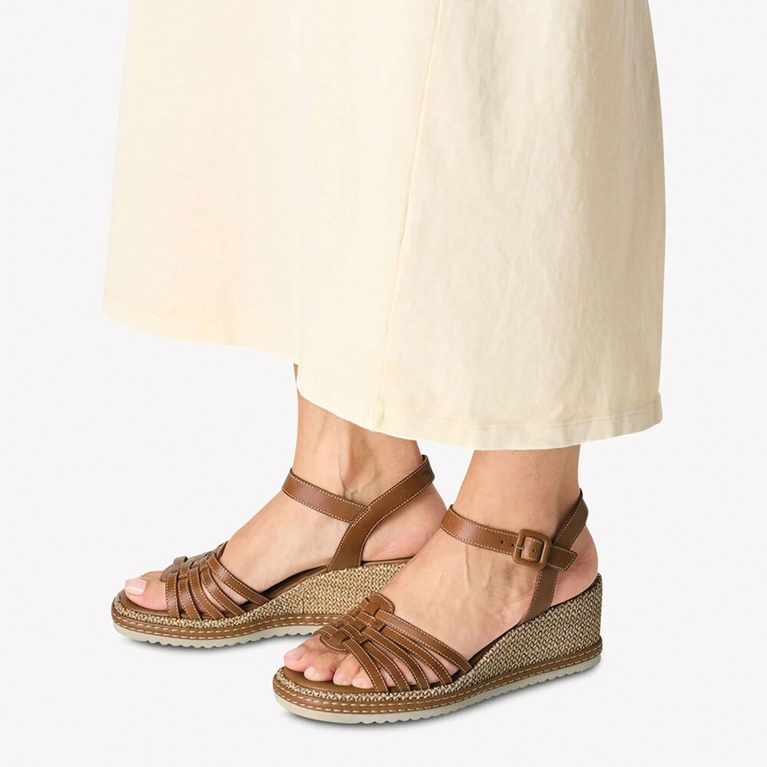 Tamaris γυναικεία πλατφόρμα σε ταμπά χρώμα κατασκευασμένη από δέρμα. Ύψος τακουνιού 6,5εκ.
