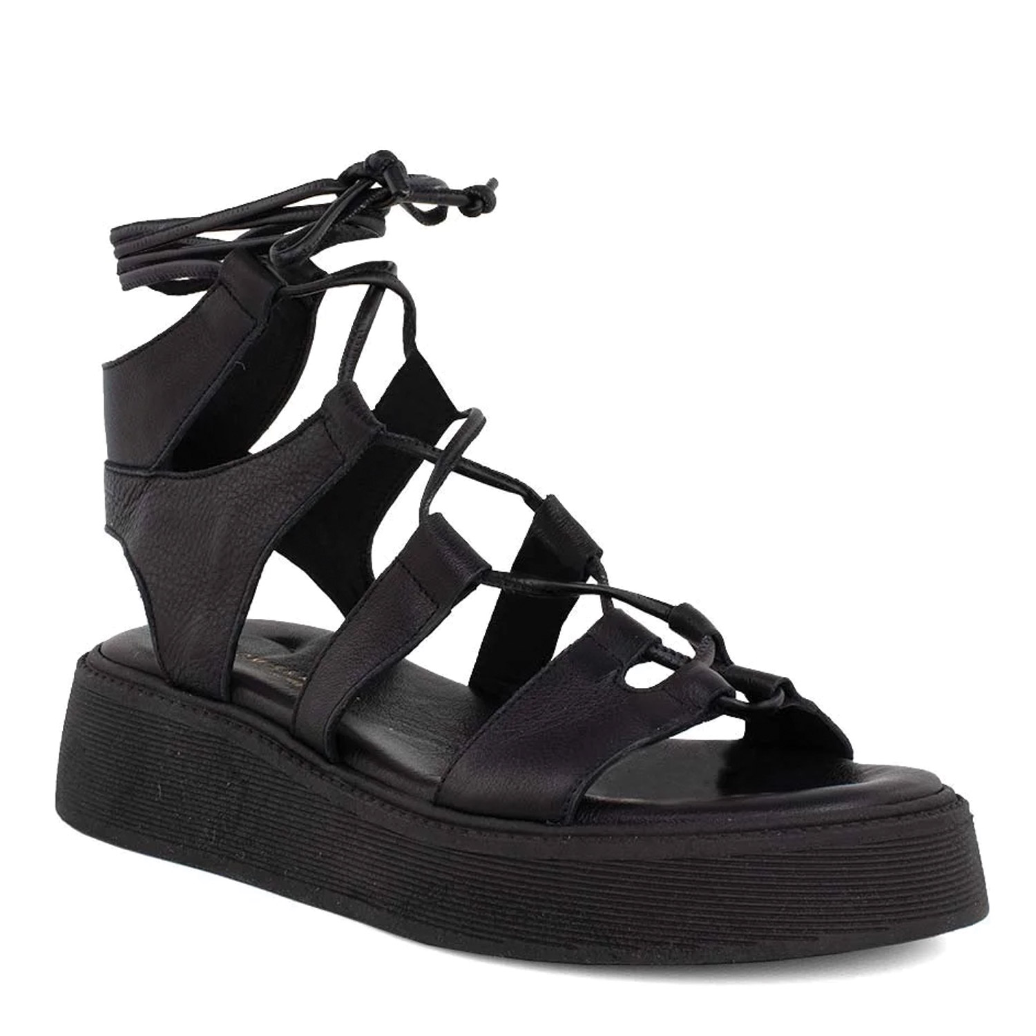 Komis & Komis γυναικείο flatform, σε μαύρο χρώμα, κατασκευασμένο από δέρμα, με ανατομικό, δερμάτινο πάτο. Ύψος σόλας 4εκ.