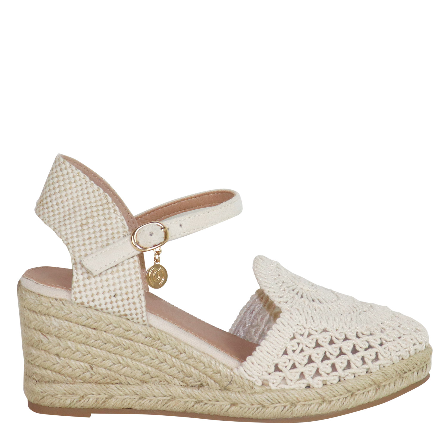 Migato γυναικεία εσπαντρίγια, σε μπεζ χρώμα, κατασκευασμένη από ύφασμα. Ύψος σόλας 7εκ.