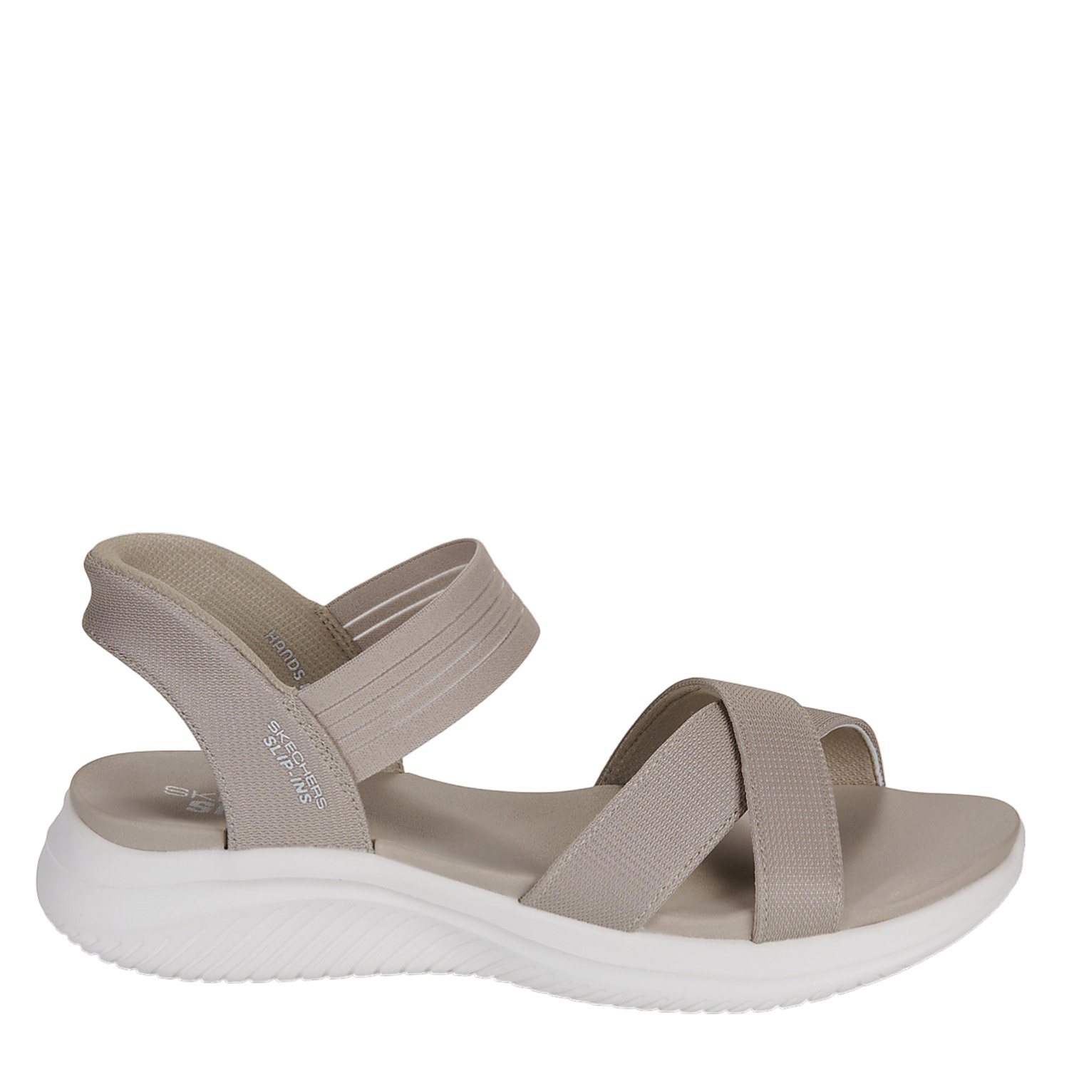 Απολαύστε ηλιόλουστες μέρες με δροσερή άνεση με τα Skechers Hands Free Slip-ins®: Ultra Flex 3.0 - Ποτέ καλύτερα. Σχεδιασμένο με το Heel Pillow™, αυτό το σανδάλι με λάστιχο διαθέτει ελαστικό λουράκι στο πάνω μέρος με μαλακό πέλμα Yoga Foam®. Our Planet Matters®: Καλό για τα πόδια σας. Καλό για τον κόσμο.®