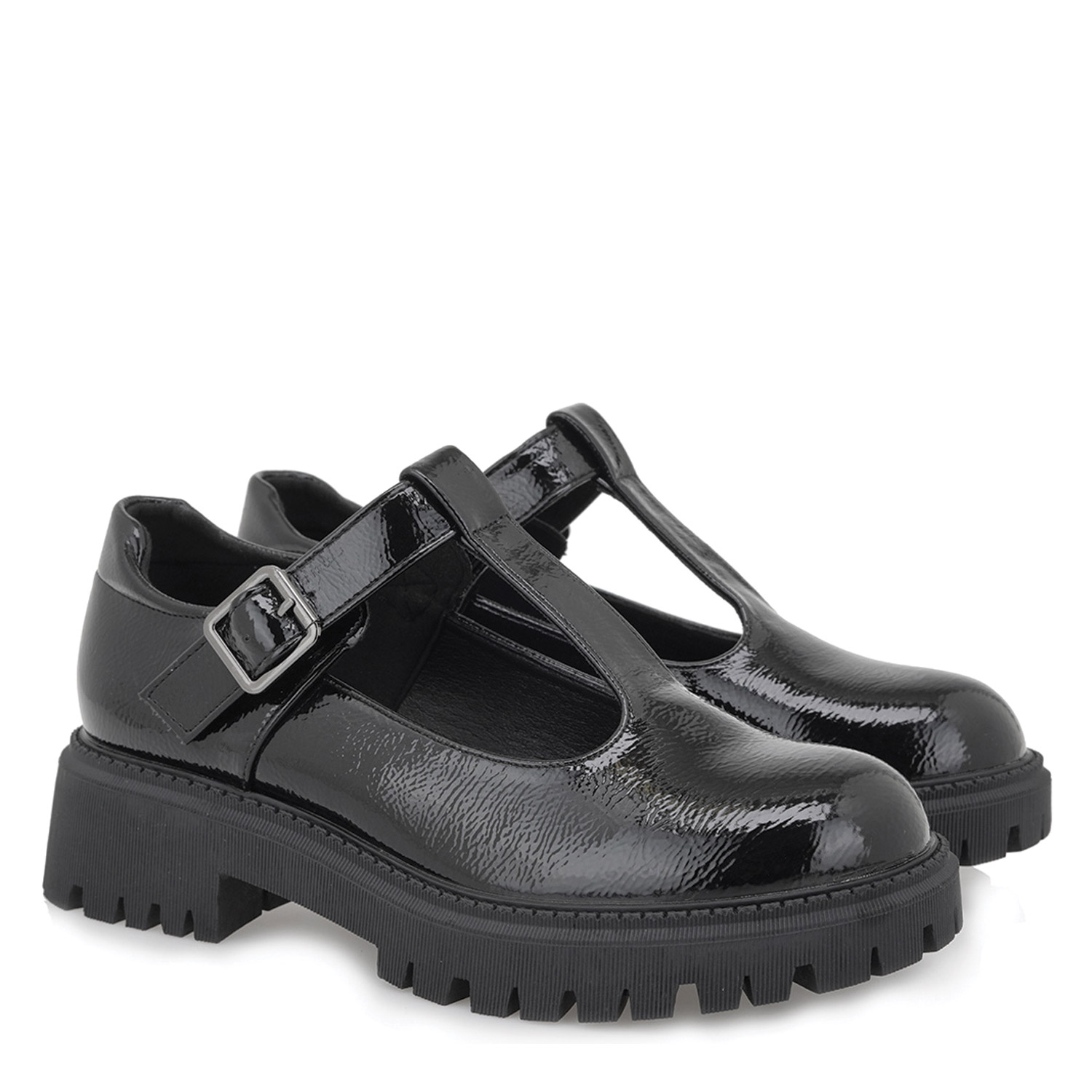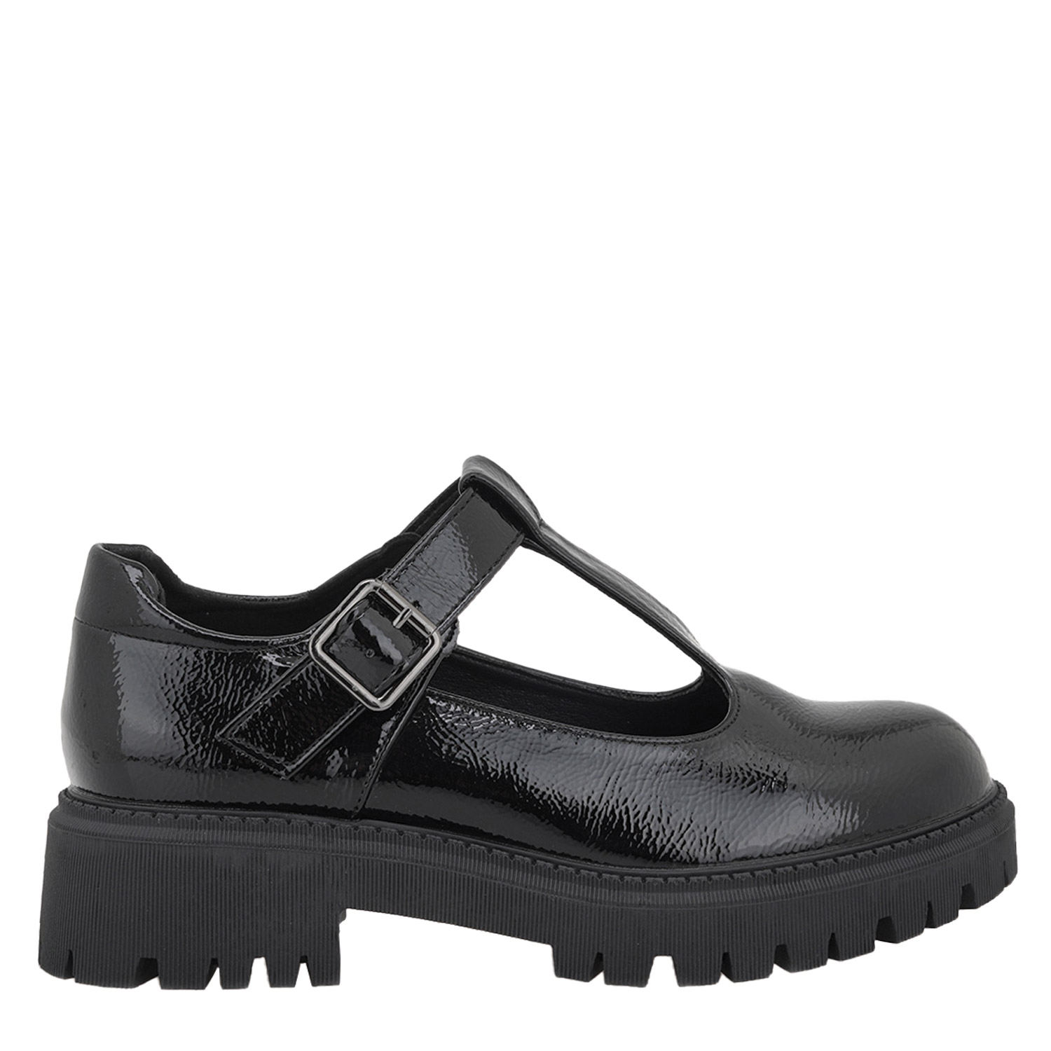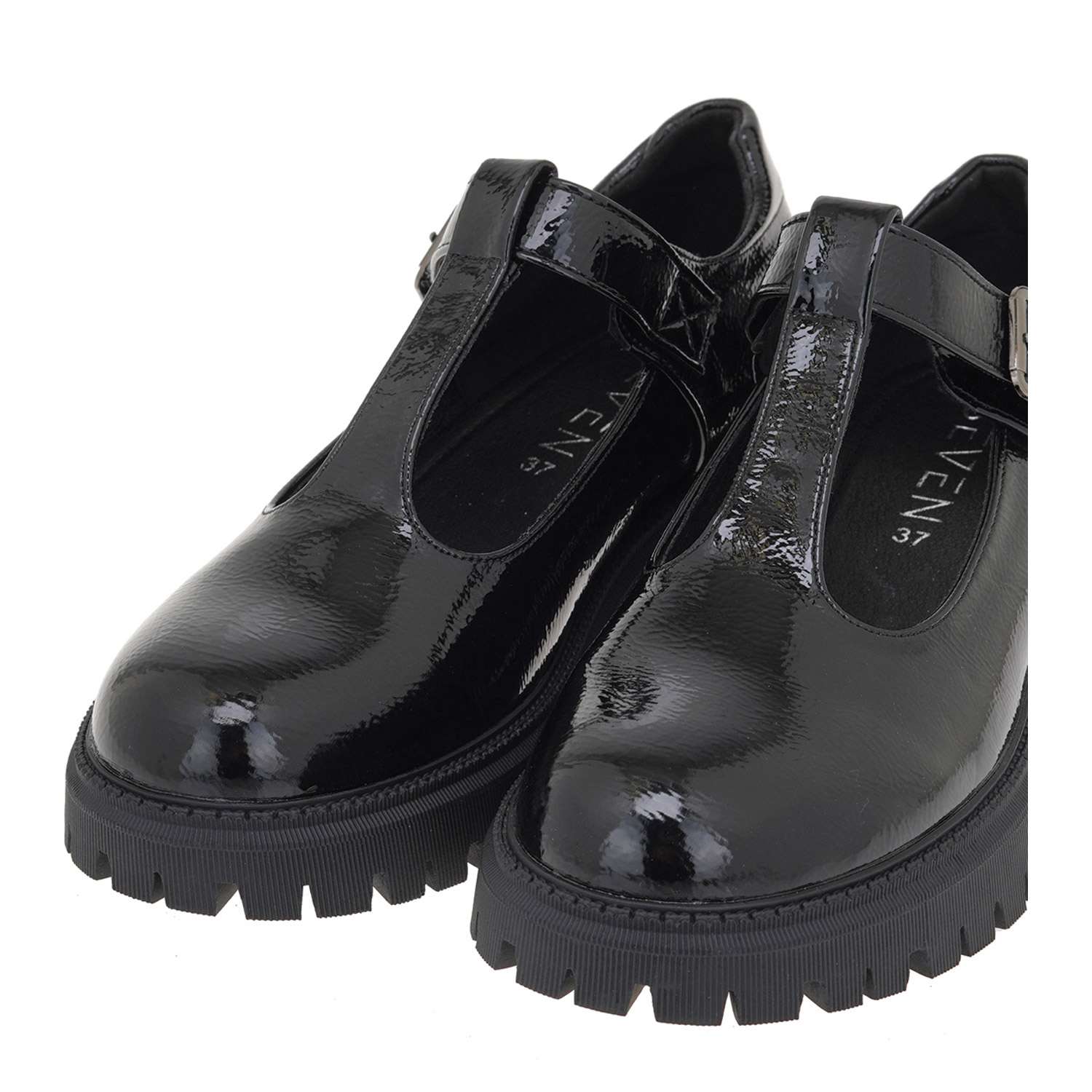 Seven γυναικείο casual τύπου Mary Jane, σε μαύρο χρώμα, κατασκευασμένο από λουστρίνι. Ύψος τακουνιού 4,5εκ.