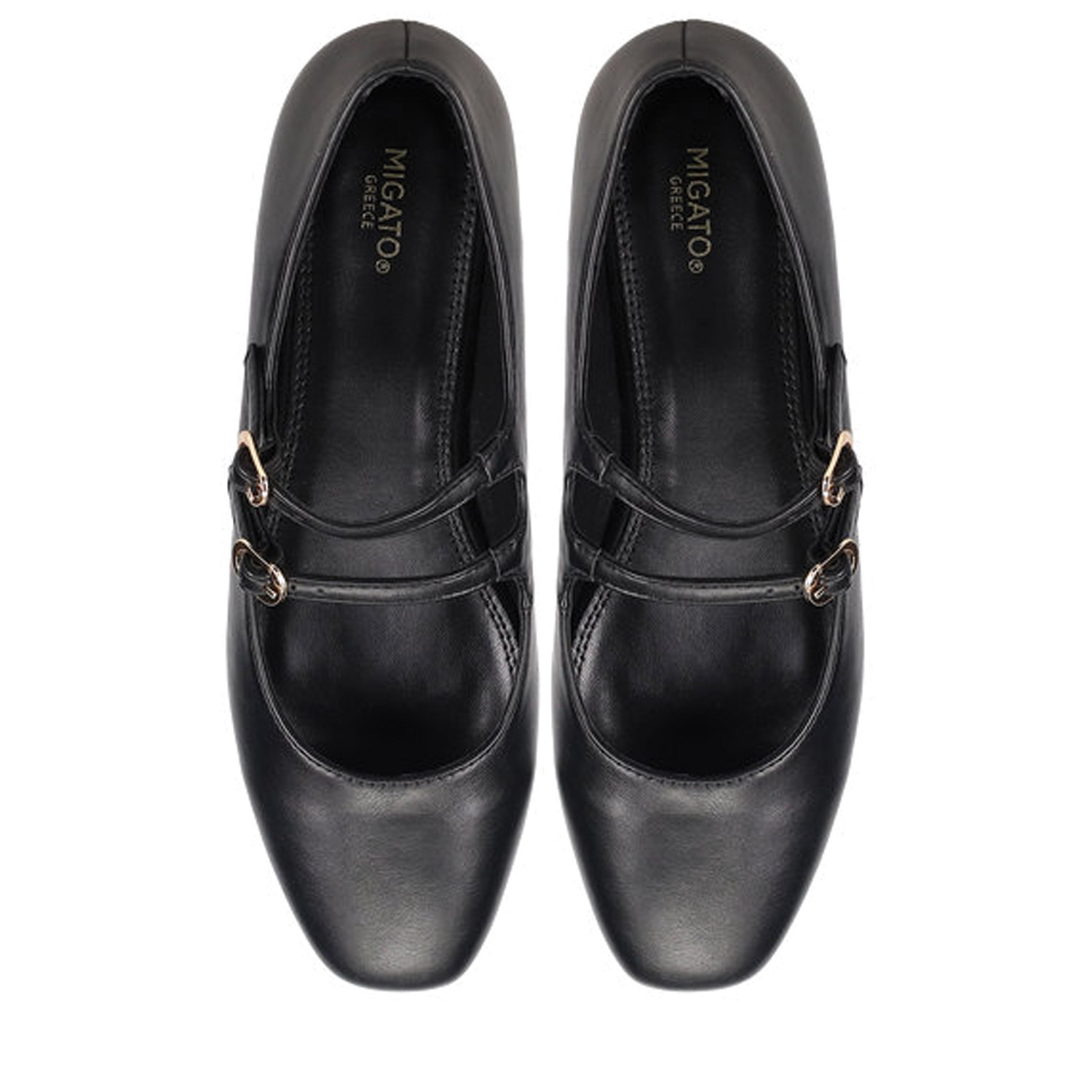 Migato γυναικείο Mary Jane, σε μαύρο χρώμα, κατασκευασμένο από οικολογικό δέρμα. Ύψος τακουνιού 1.5εκ.