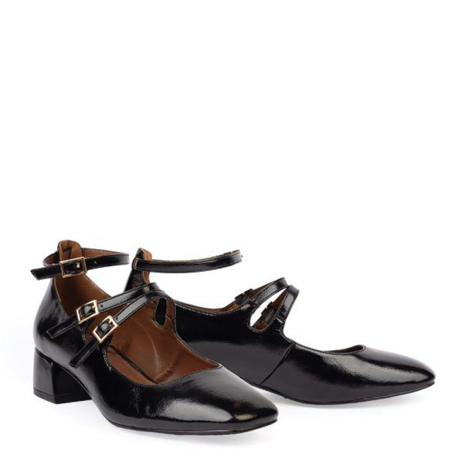Loveberry γυναικείο mary-jane, σε μαύρο χρώμα, κατασκευασμένο από λουστρίνι. Ύψος τακουνιού 3εκ.