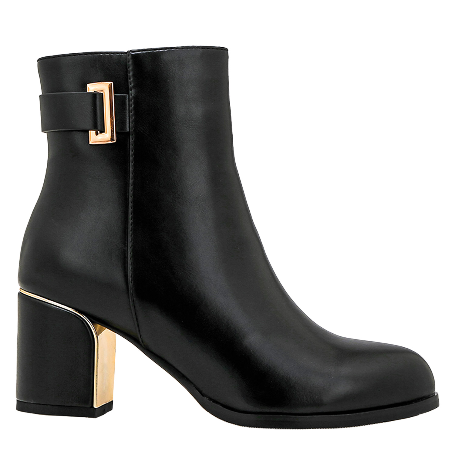 Seven γυναικείο μποτάκι, σε μαύρο χρώμα, κατασκευασμένο από οικολογικό δέρμα. Ύψος τακουνιού 7εκ.