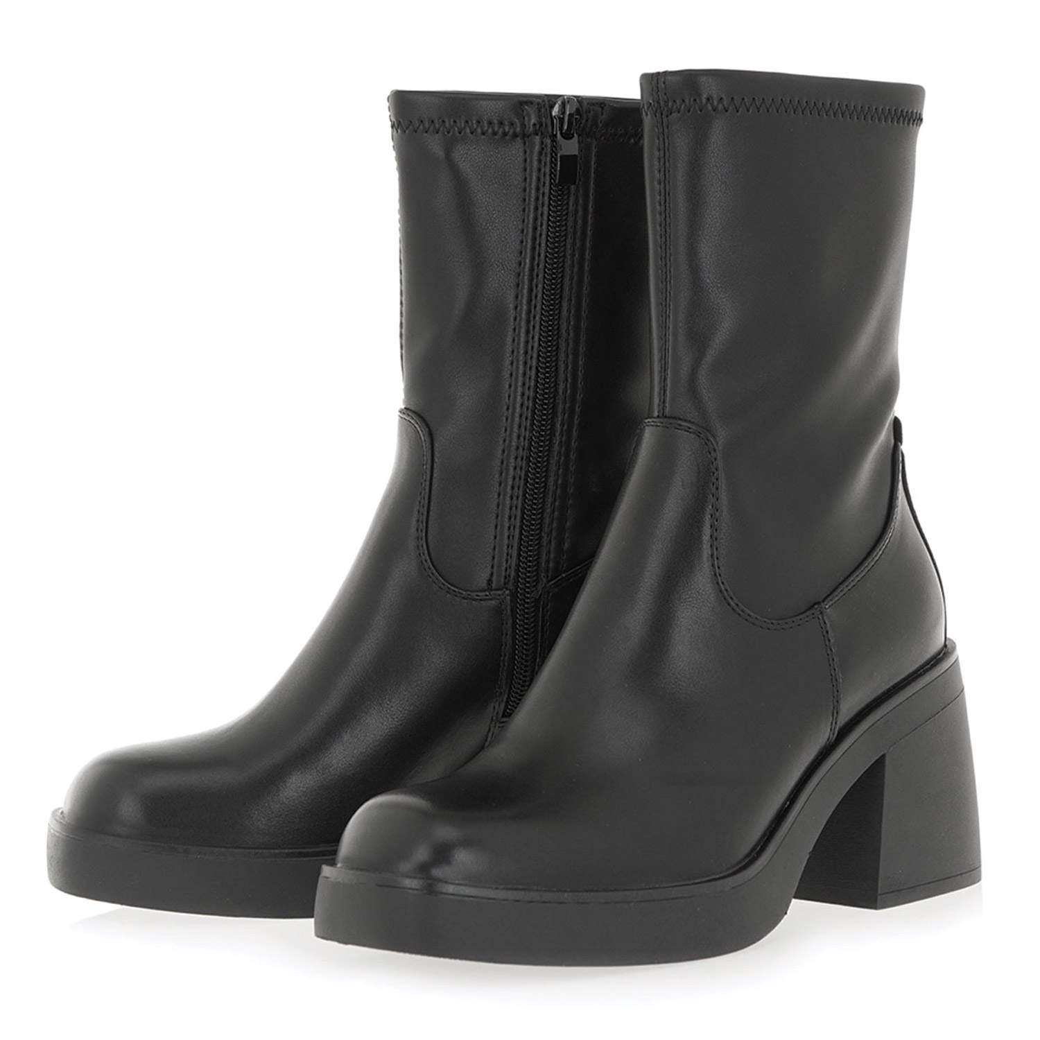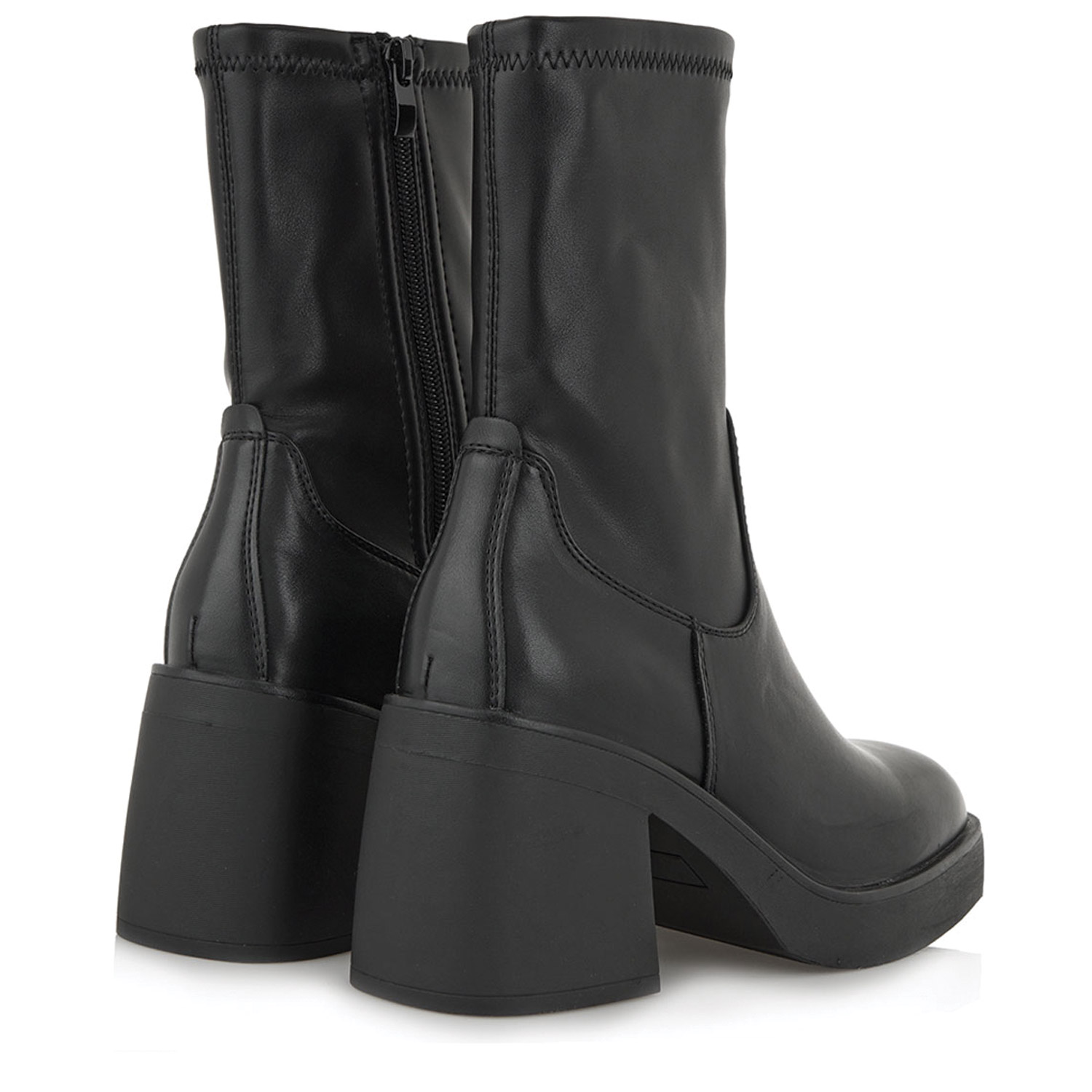 Seven γυναικείο μποτάκι, σε μαύρο χρώμα, κατασκευασμένο από οικολογικό δέρμα. Ύψος τακουνιού 8εκ.
