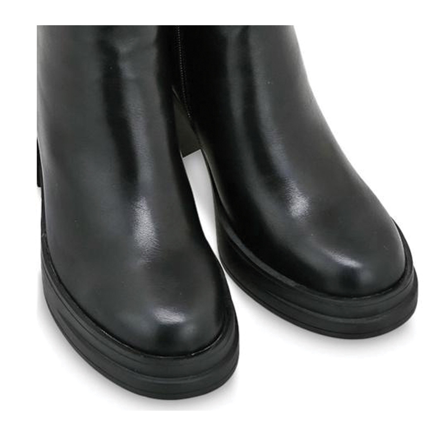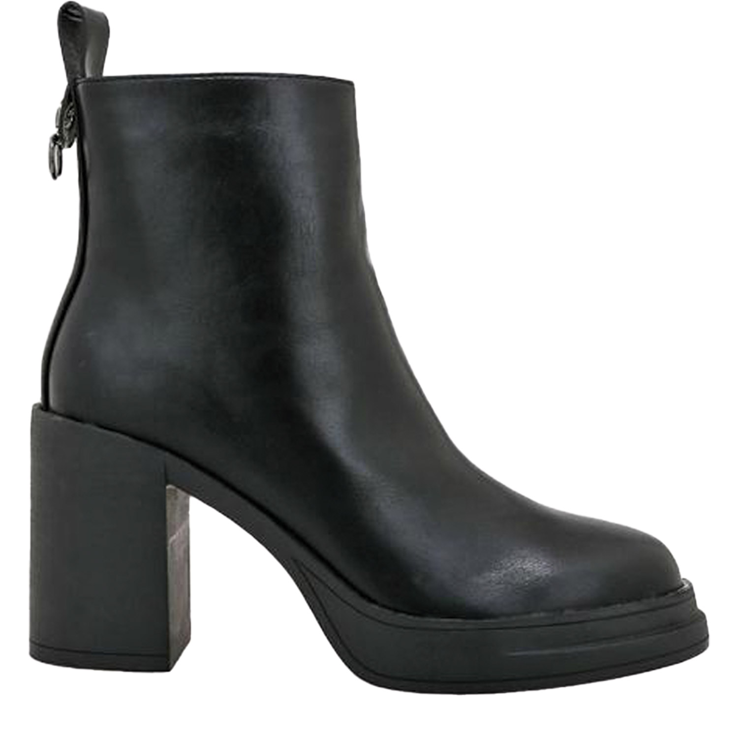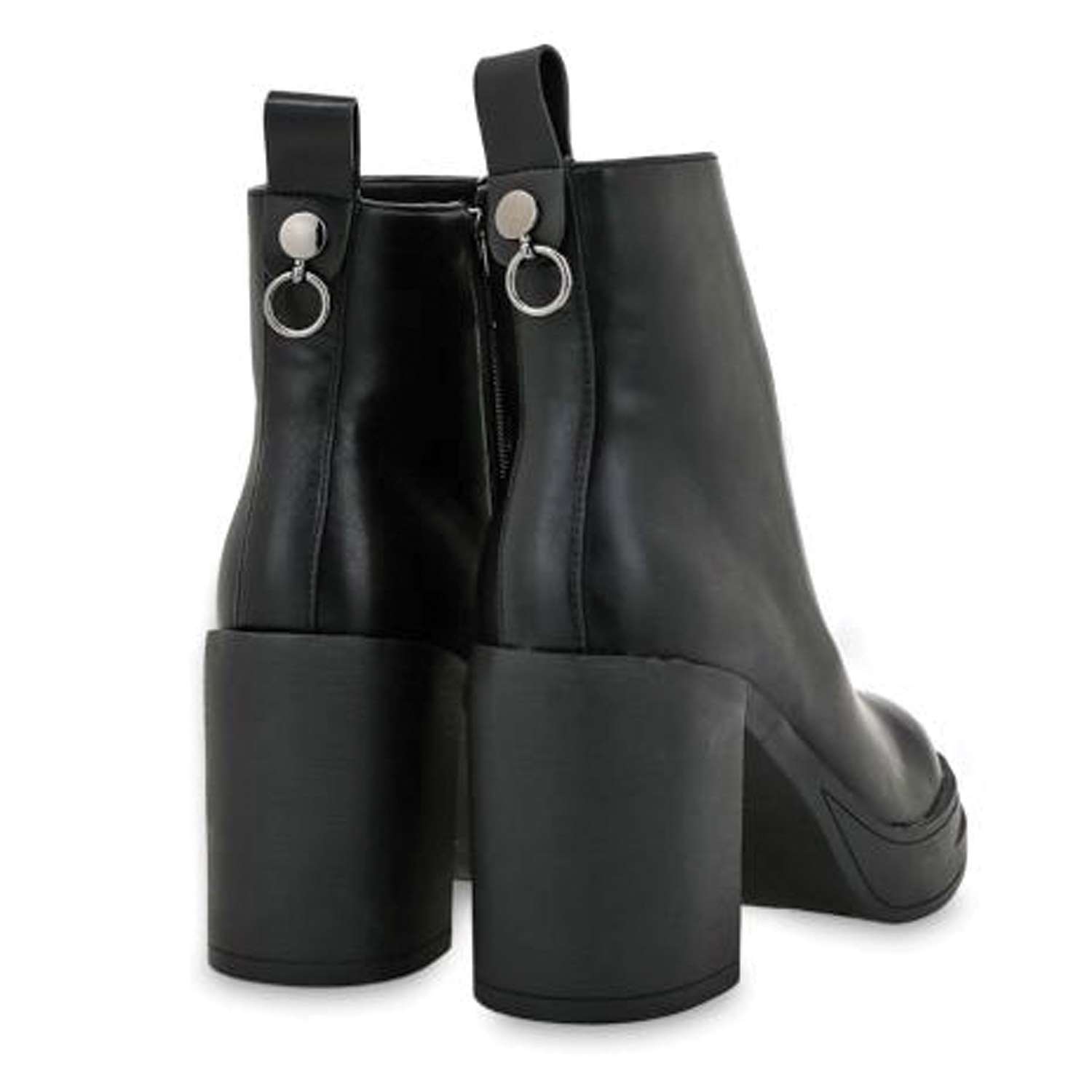 Seven γυναικείο μποτάκι, σε μαύρο χρώμα, κατασκευασμένο από οικολογικό δέρμα. Ύψος τακουνιού 9εκ.