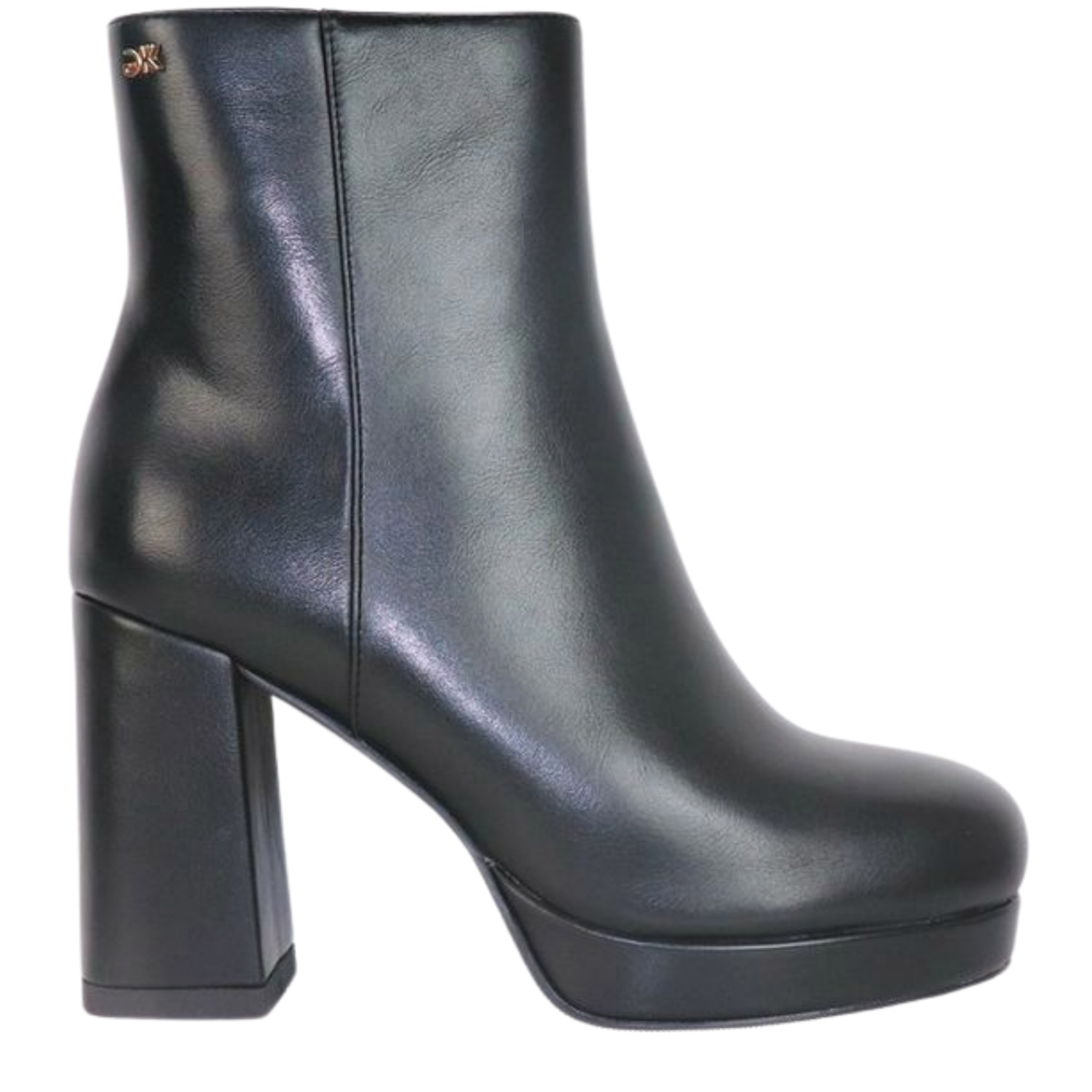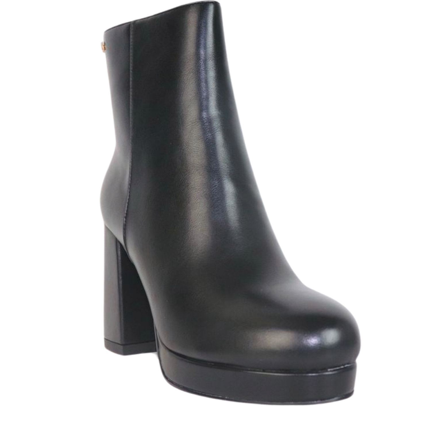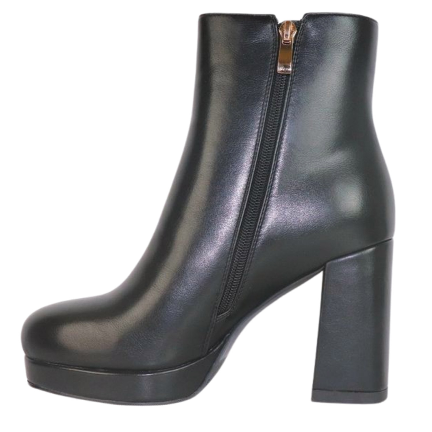 Gianna Kazakou γυναικείο μποτάκι, σε μαύρο χρώμα, κατασκευασμένο από οικολογικό δέρμα. Ύψος τακουνιού 10εκ.