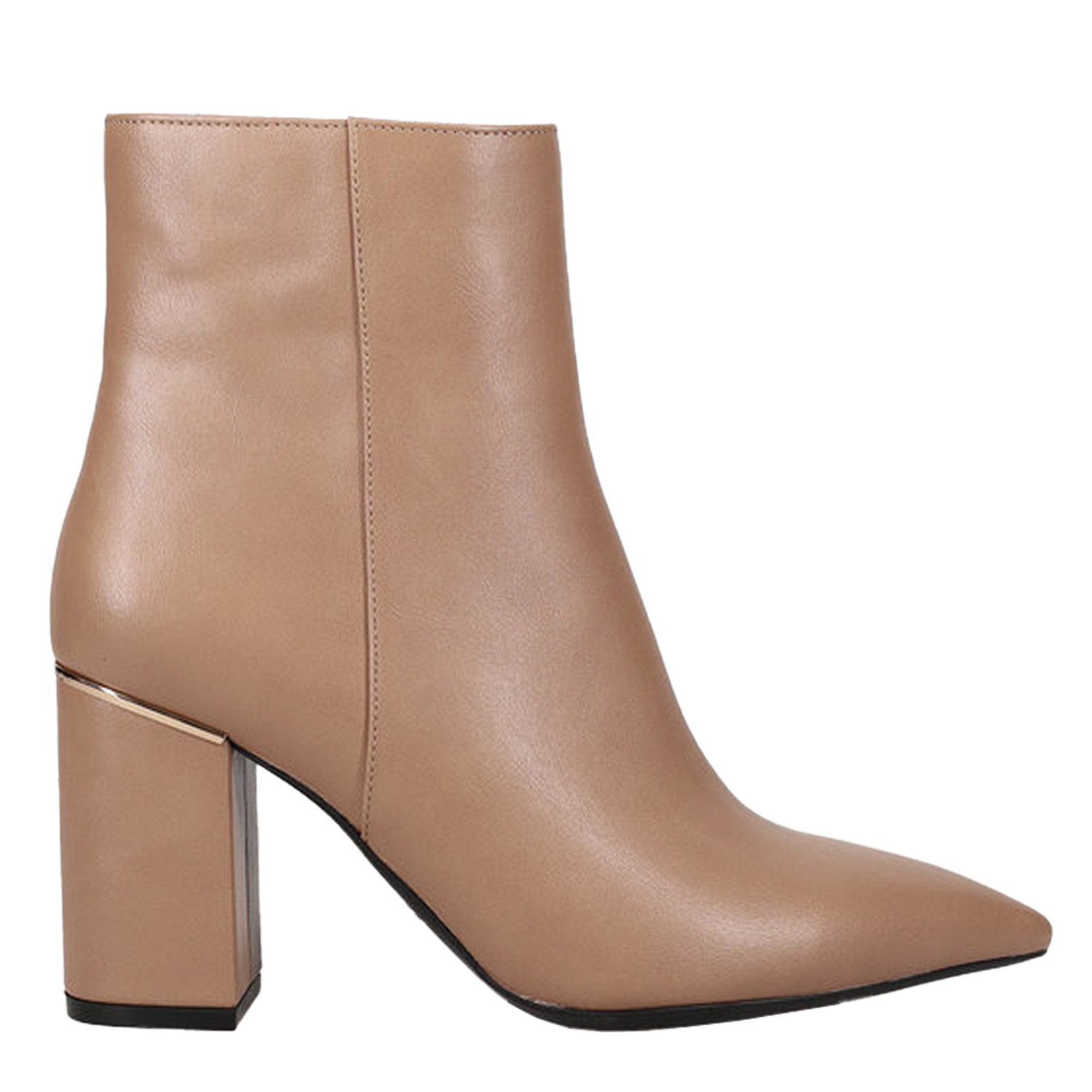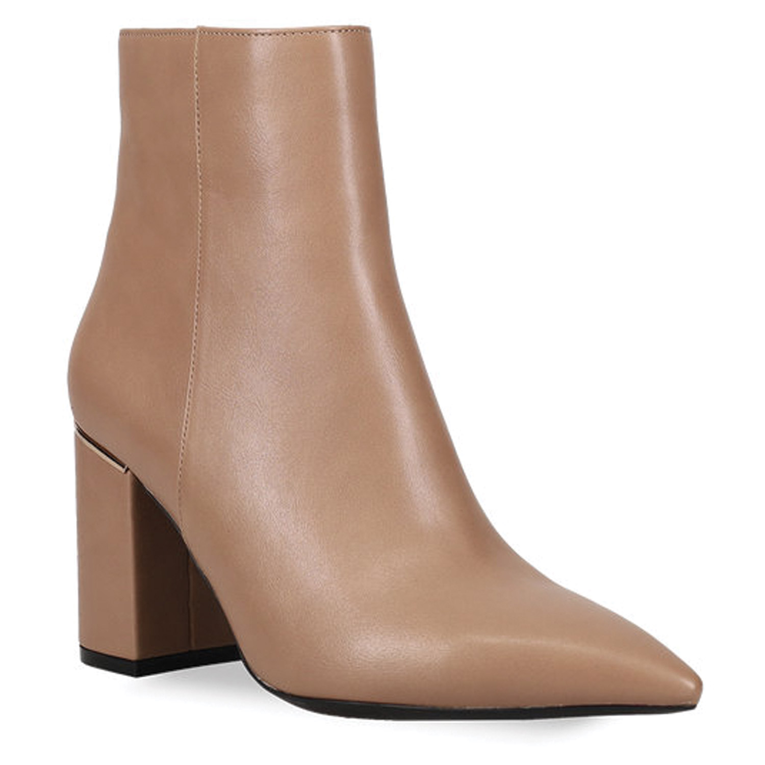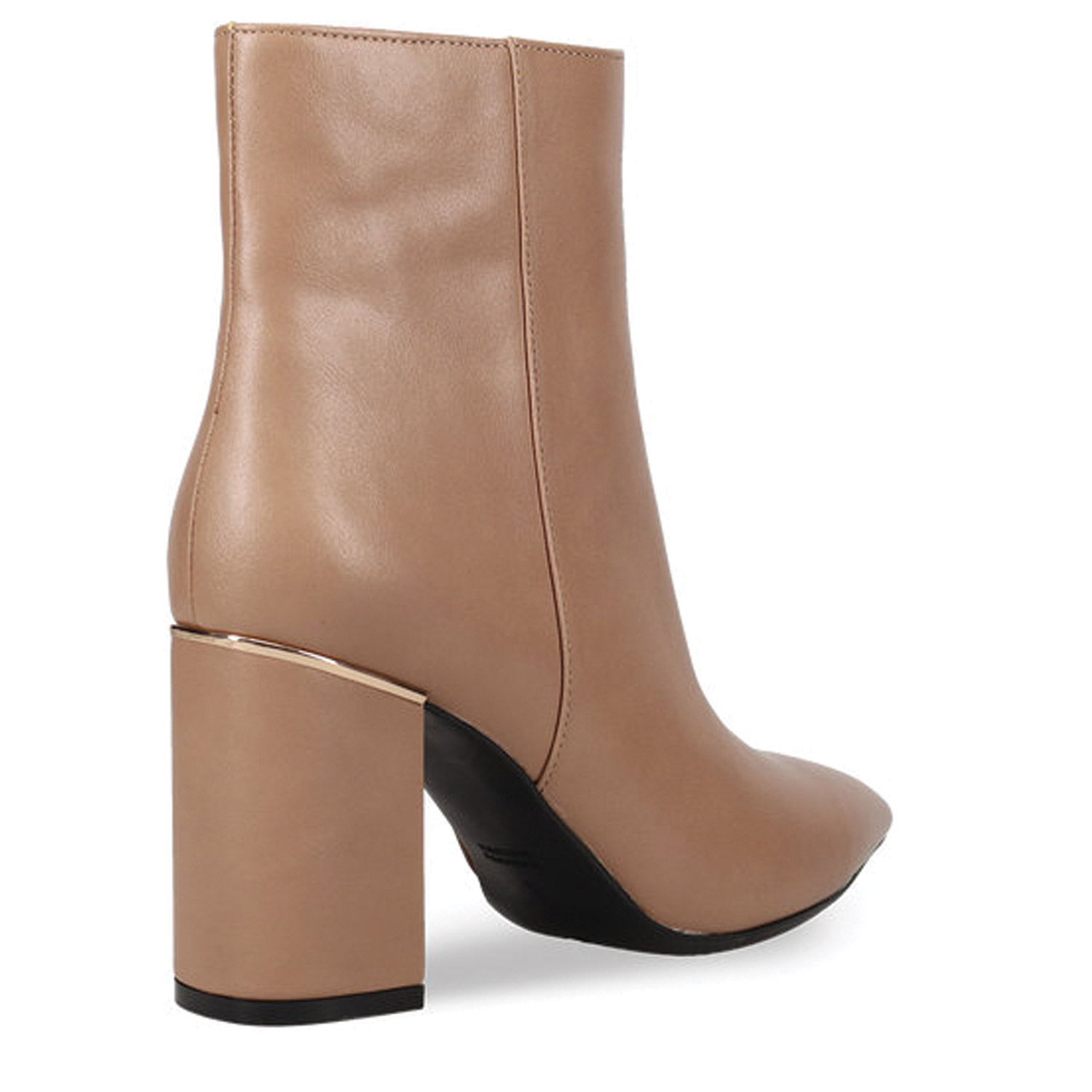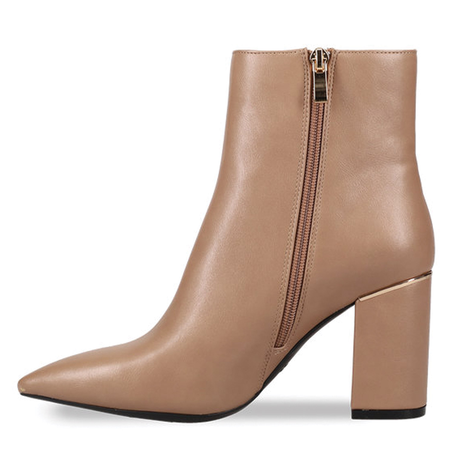 Taupe μυτερό μποτάκι.Διαθέτει μεσαίο χοντρό τακούνι. Κλείνει με φερμουάρ στο πλάι.
