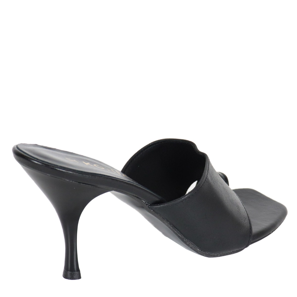 Koniarisshoes γυναικείο mule σε μαύρο χρώμα κατασκευασμένο από δέρμα με ανατομικό πατάκι. Ύψος τακουνιού 9εκ.