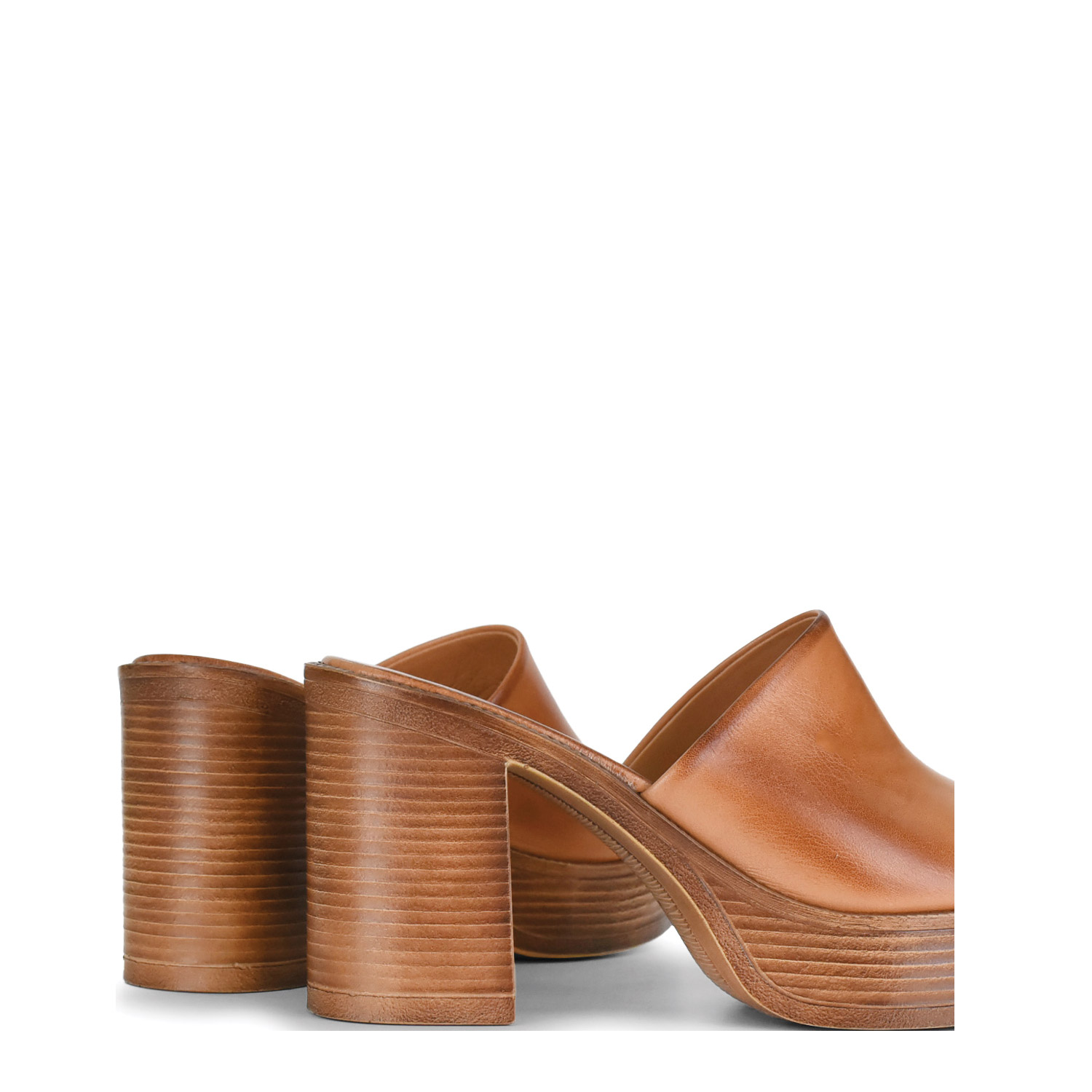 Tsakiris Mallas γυναικείο mule, σε ταμπά χρώμα, κατασκευασμένο από δέρμα. Ύψος τακουνιού 9.5εκ.
