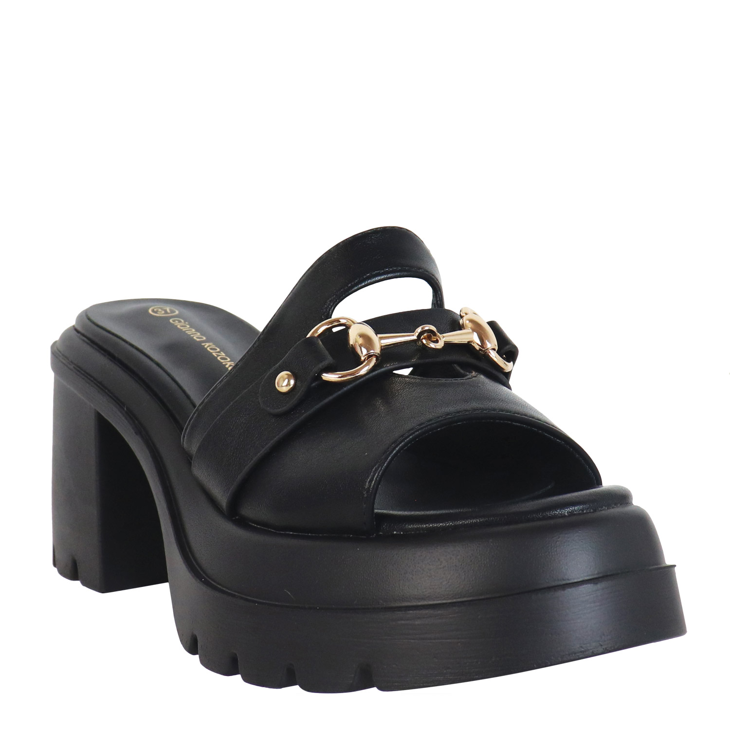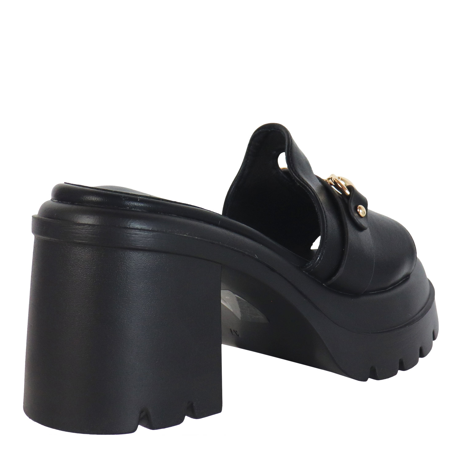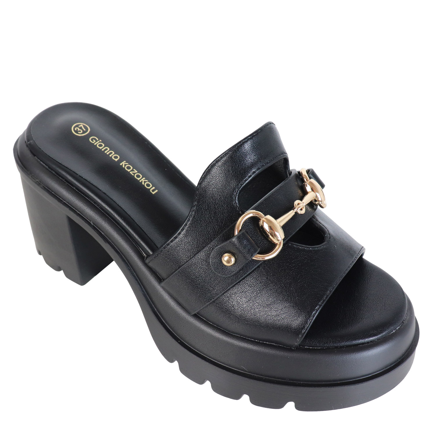 Gianna Kazakou γυναικείο mule, σε μαύρο χρώμα, κατασκευασμένο από οικολογικό δέρμα. Ύψος τακουνιού 9εκ.