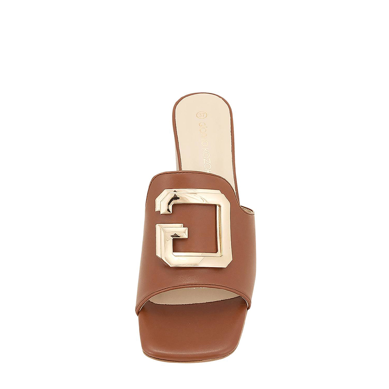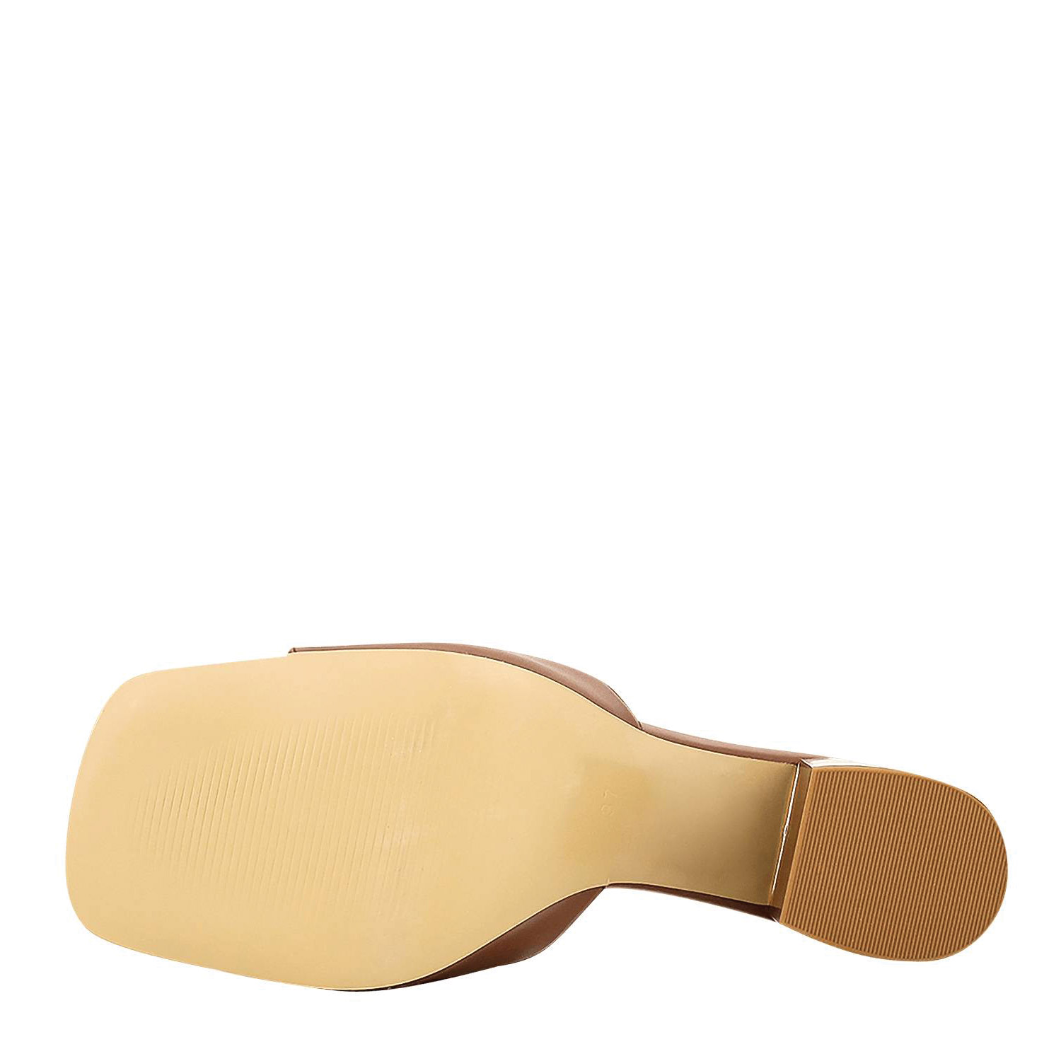 Gianna Kazakou γυναικείο mule, σε ταμπά χρώμα, κατασκευασμένο από οικολογικό δέρμα. Ύψος τακουνιού 7.5εκ.