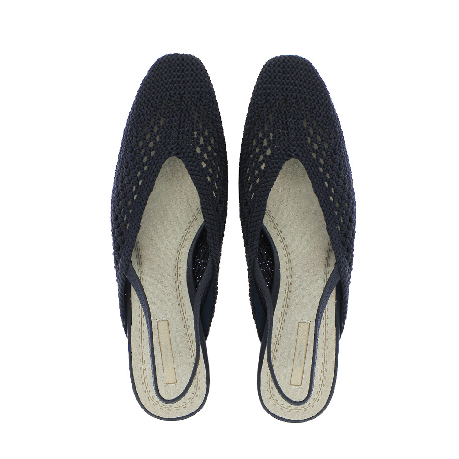 Koniarisshoes γυναικείο mule, σε μπλε χρώμα, κατασκευασμένο από ύφασμα. Ύψος τακουνιού 4εκ.