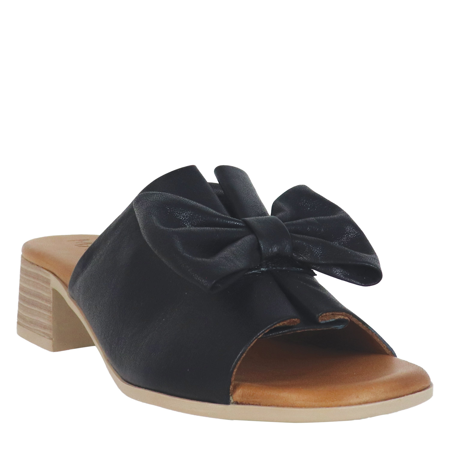 Koniarisshoes γυναικείο mule, σε μαύρο χρώμα, κατασκευασμένο από δέρμα. Ύψος τακουνιού 4.5εκ.
