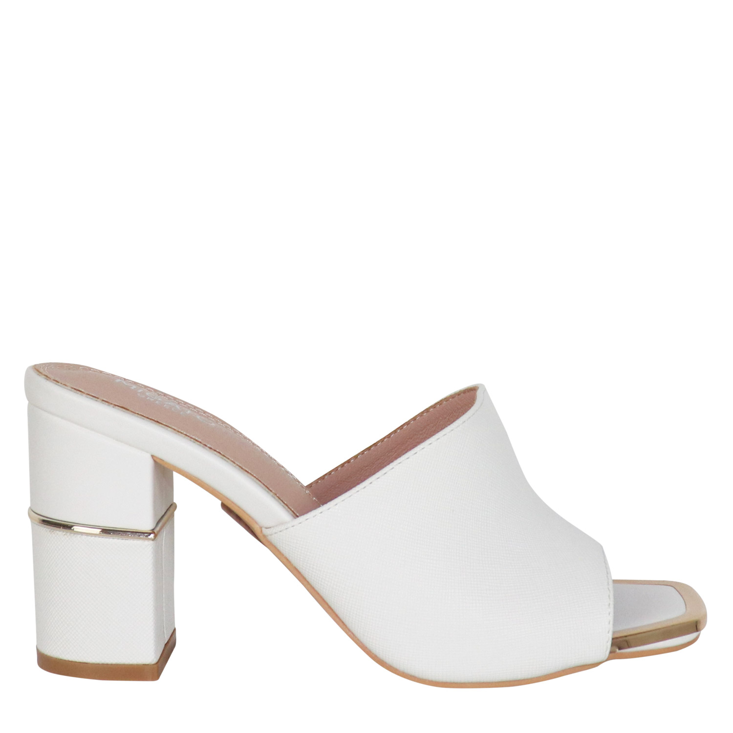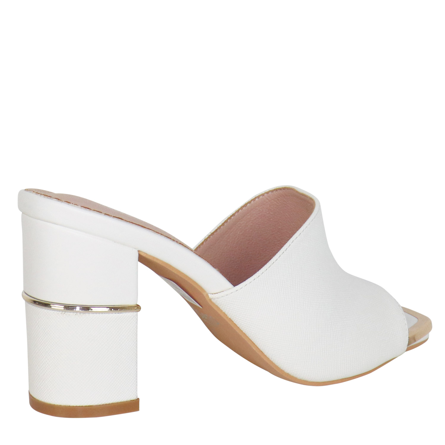 Migato γυναικείο mule σε λευκό χρώμα κατασκευασμένο από οικολογικό δέρμα. Ύψος τακουνιού 9.5εκ.