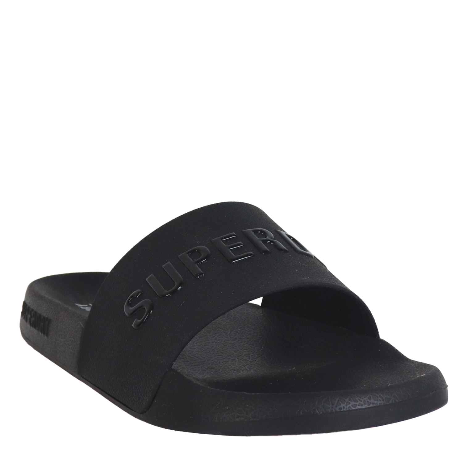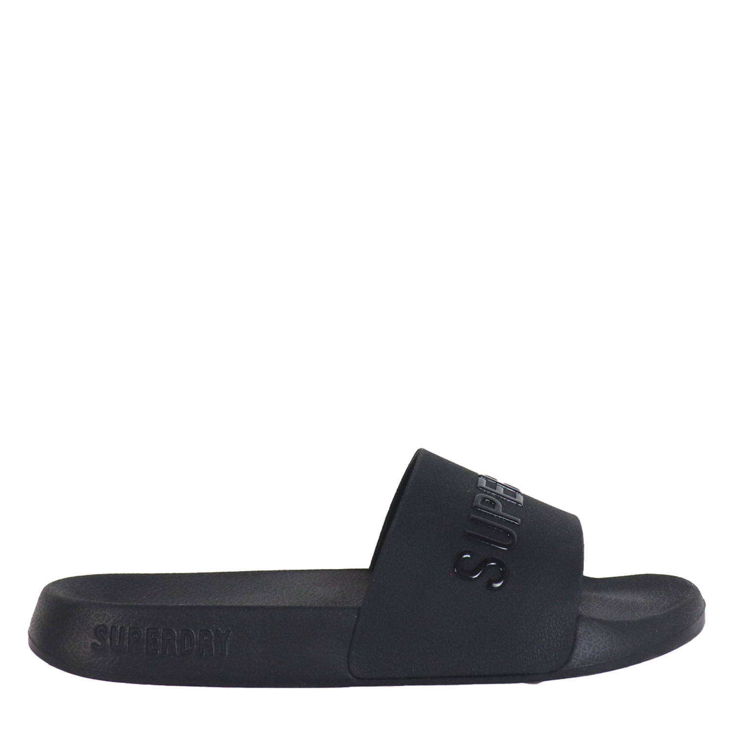 Superdry γυναικείο slide, σε μαύρο χρώμα, κατασκευασμένο από οικολογικό δέρμα. Ύψος σόλας 2εκ.