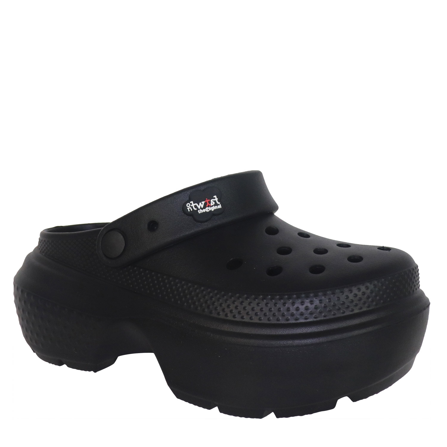 Koniarisshoes γυναικείο slide σε μαύρο χρώμα, κατασκευασμένο από οικολογικό δέρμα, με ανατομικό πάτο.