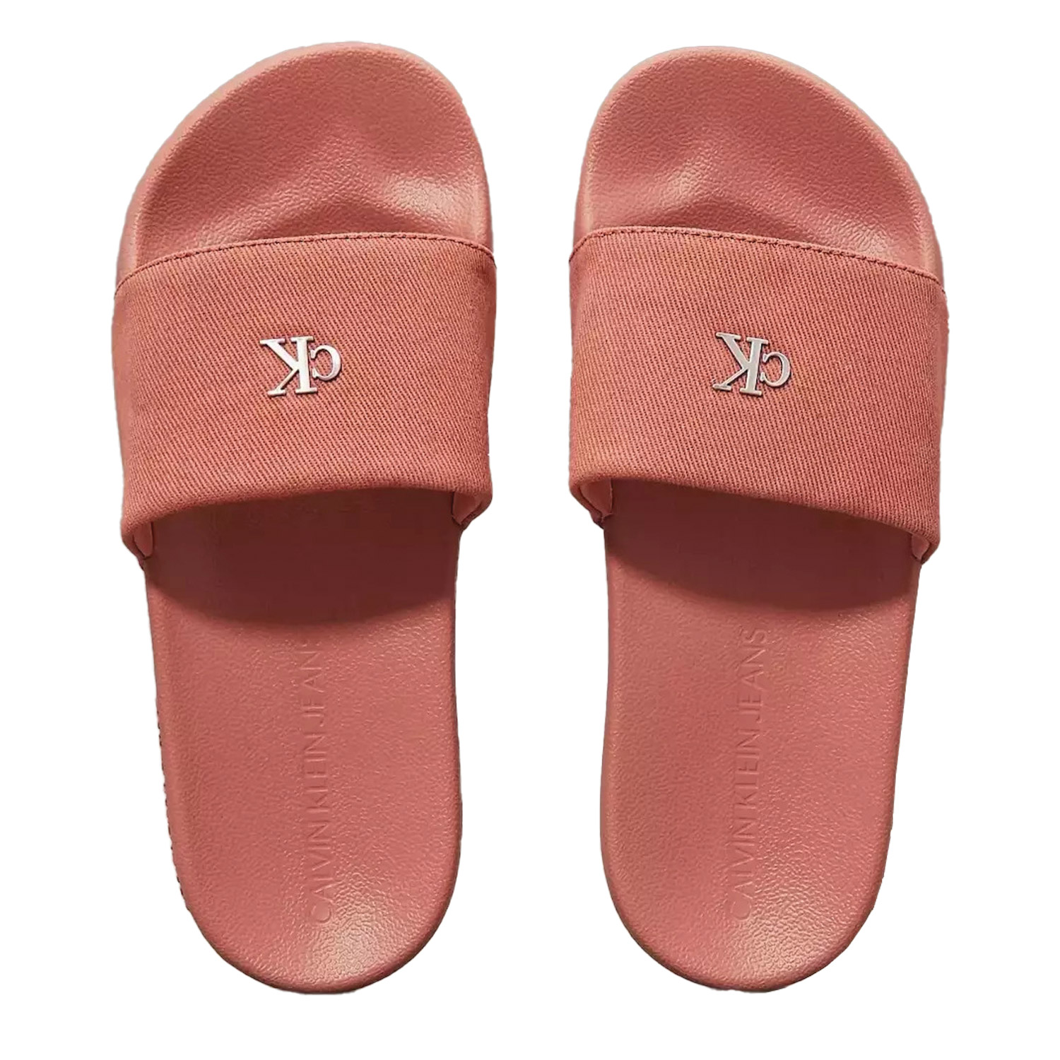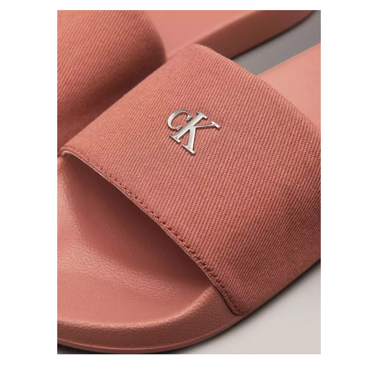 Calvin Klein γυναικείο slide, σε κεραμιδί χρώμα, κατασκευασμένο από 60% ανακυκλωμένο βαμβάκι και 40% Better Cotton Initiative.
