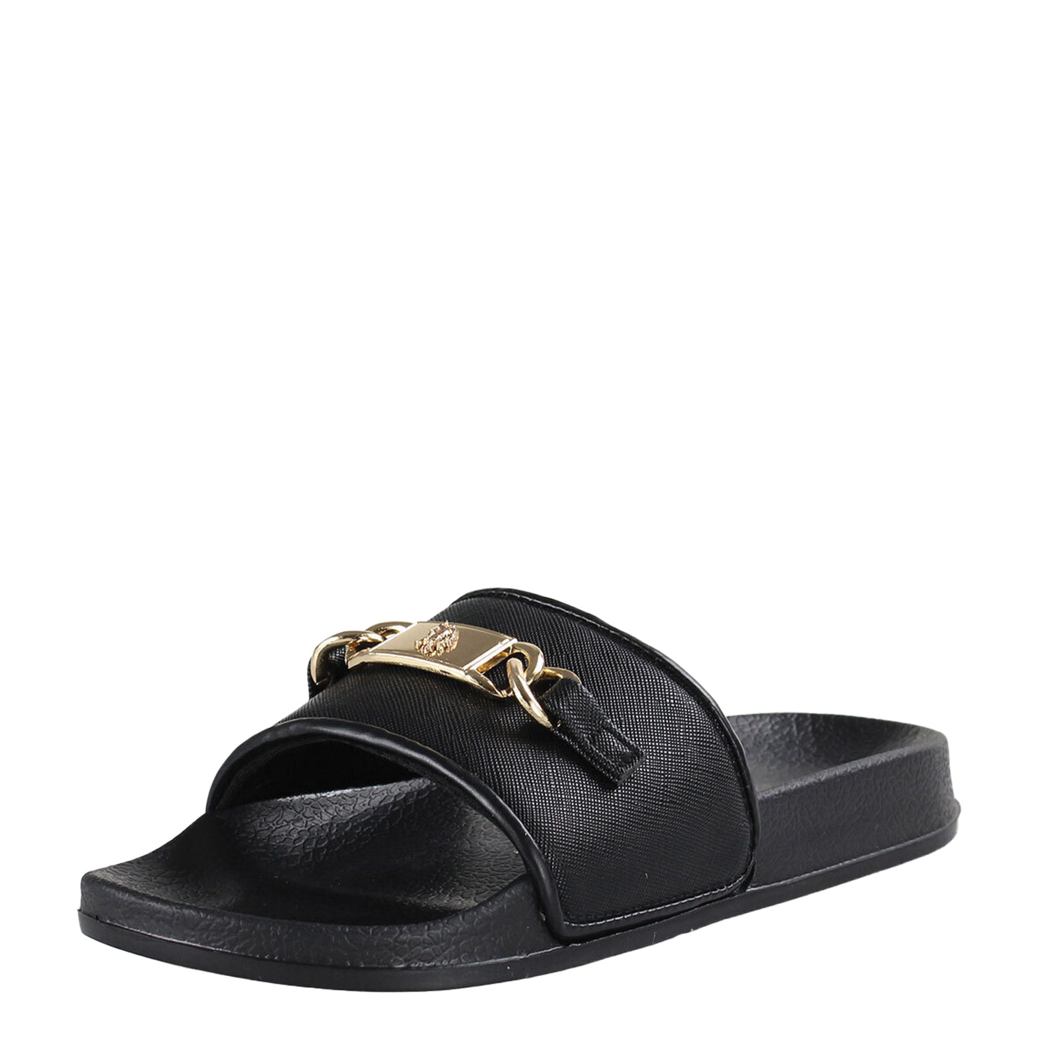 U.S. Polo ASSN γυναικείο slide, σε μαύρο χρώμα, κατασκευασμένο από οικολογικό δέρμα. Ύψος σόλας 3εκ.