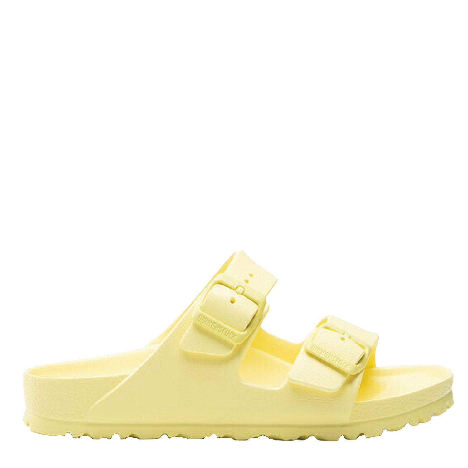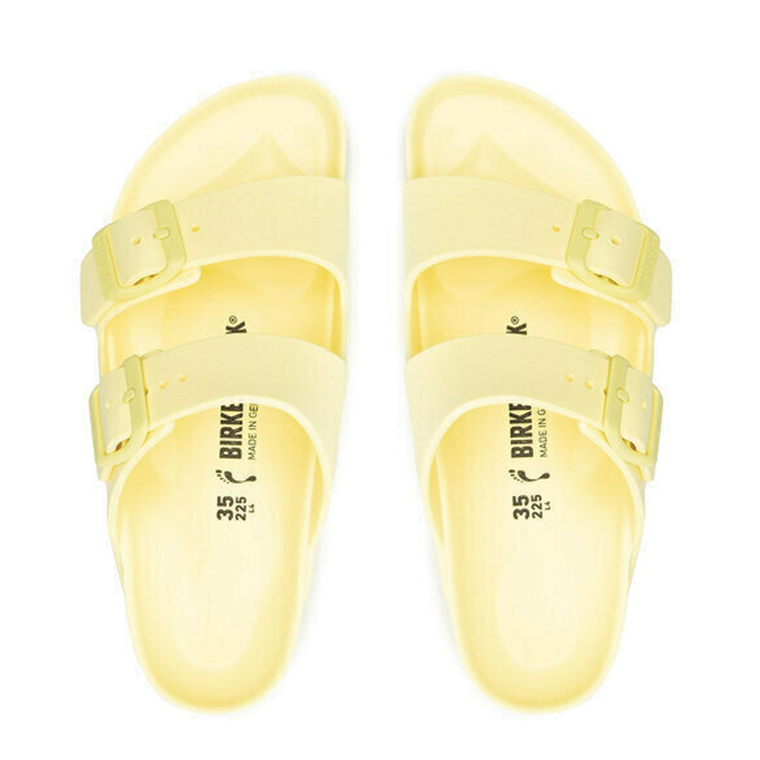 Birkenstock γυναικείο slide σε κίτρινο χρώμα, κατασκευασμένο από οικολογικό δέρμα, με ανατομικό πάτο. Ύψος σόλας 3εκ.