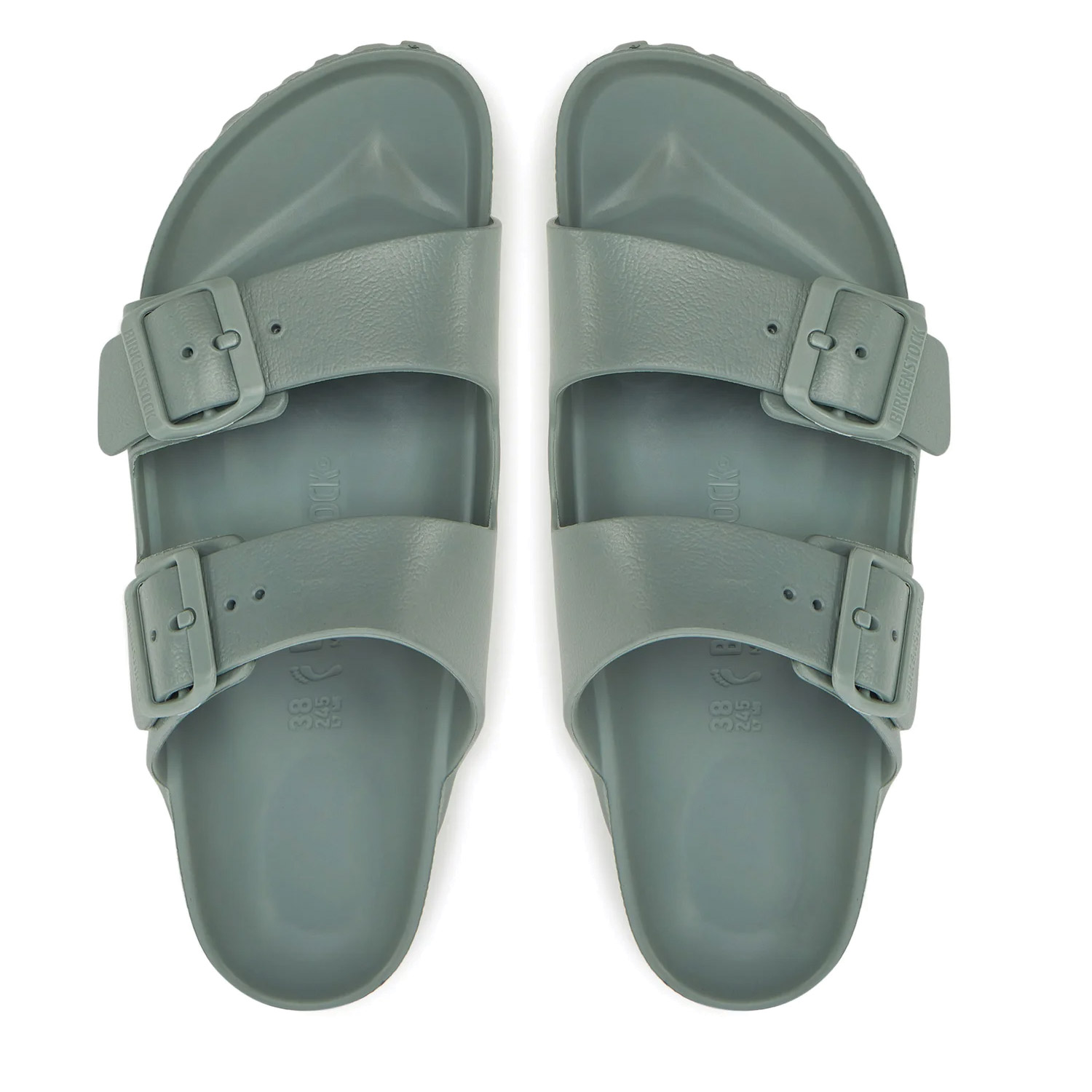 Birkenstock γυναικείο slide σε χακί χρώμα, κατασκευασμένο από οικολογικό δέρμα, με ανατομικό πάτο. Ύψος σόλας 3εκ.