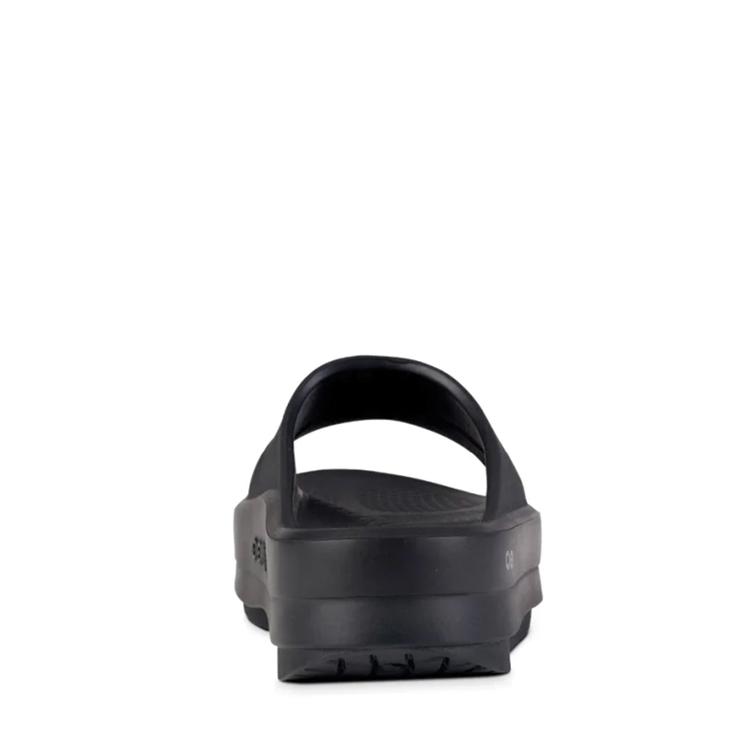 Oofos γυναικείο slide σε μαύρο χρώμα κατασκευασμένο από οικολογικό δέρμα. Ύψος σόλας 4εκ.