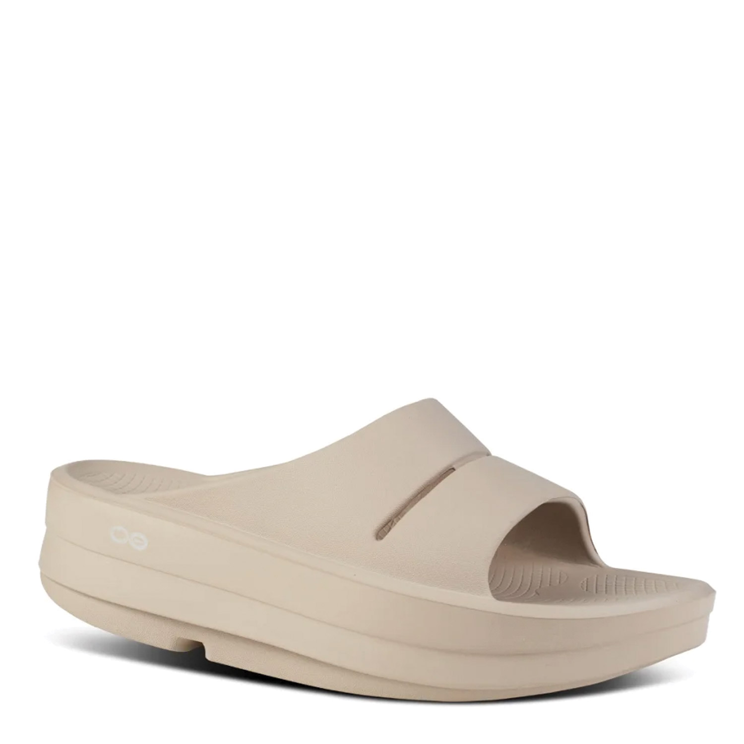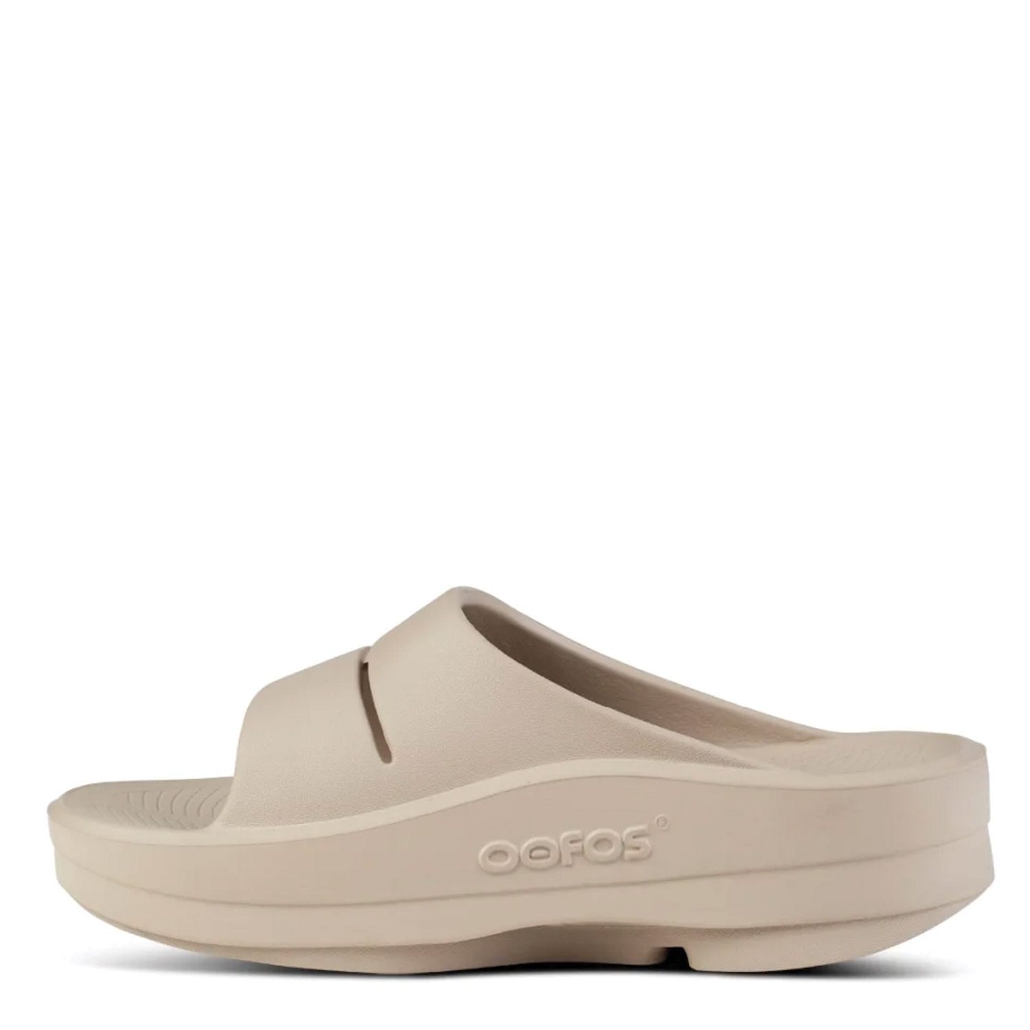 Oofos γυναικείο slide σε μπεζ χρώμα κατασκευασμένο από οικολογικό δέρμα. Ύψος σόλας 4εκ.